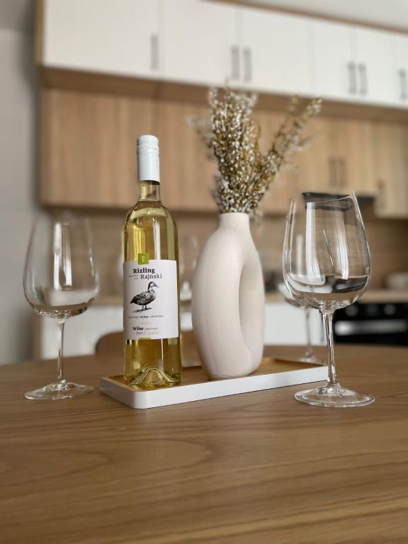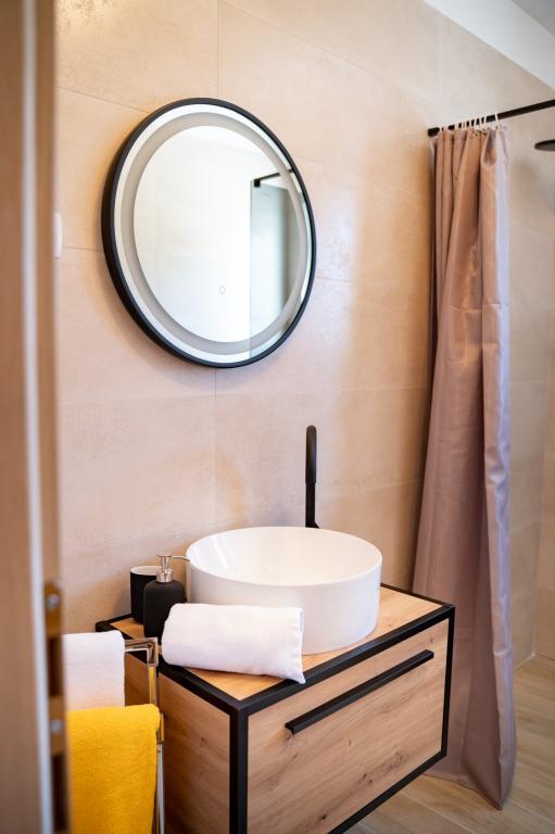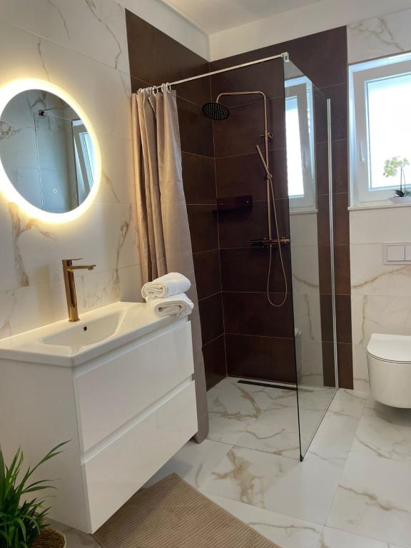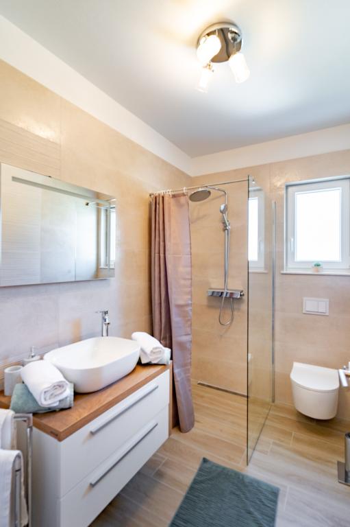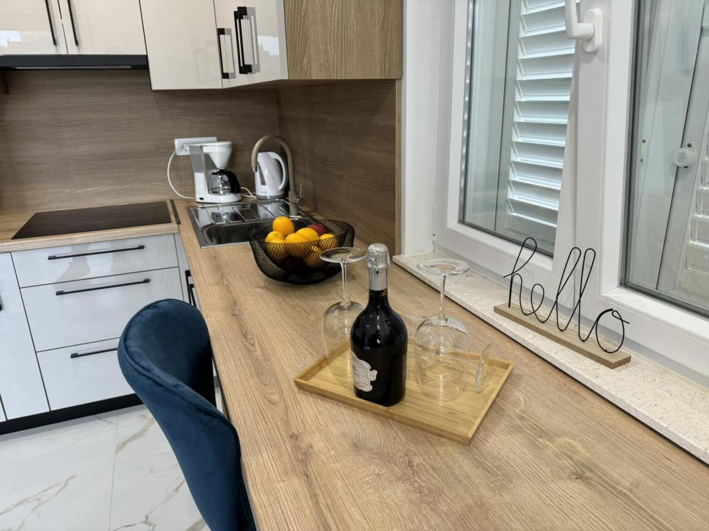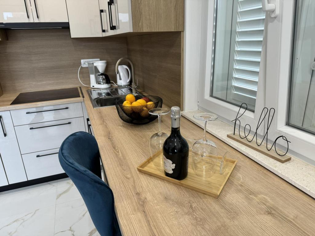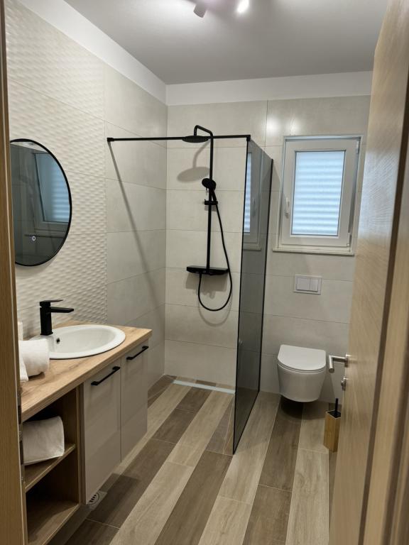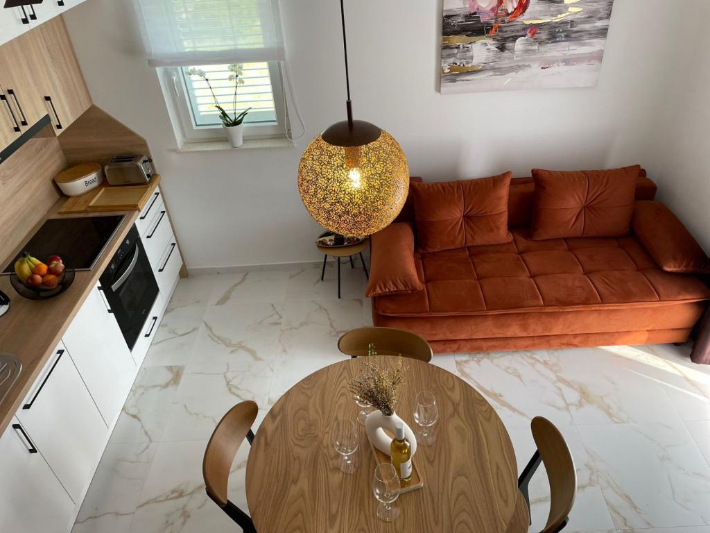 Fuldt og moderne møblerede lejligheder i en rolig del af øen Rab. Lejlighederne ligger 5 minutters gang fra stranden i Grat og 10 minutters gang fra det gamle centrum af Grat, supermarkeder er også 200 meter fra bygningen. Der er en stor gratis parkeringsplads og legeplads foran bygningen.