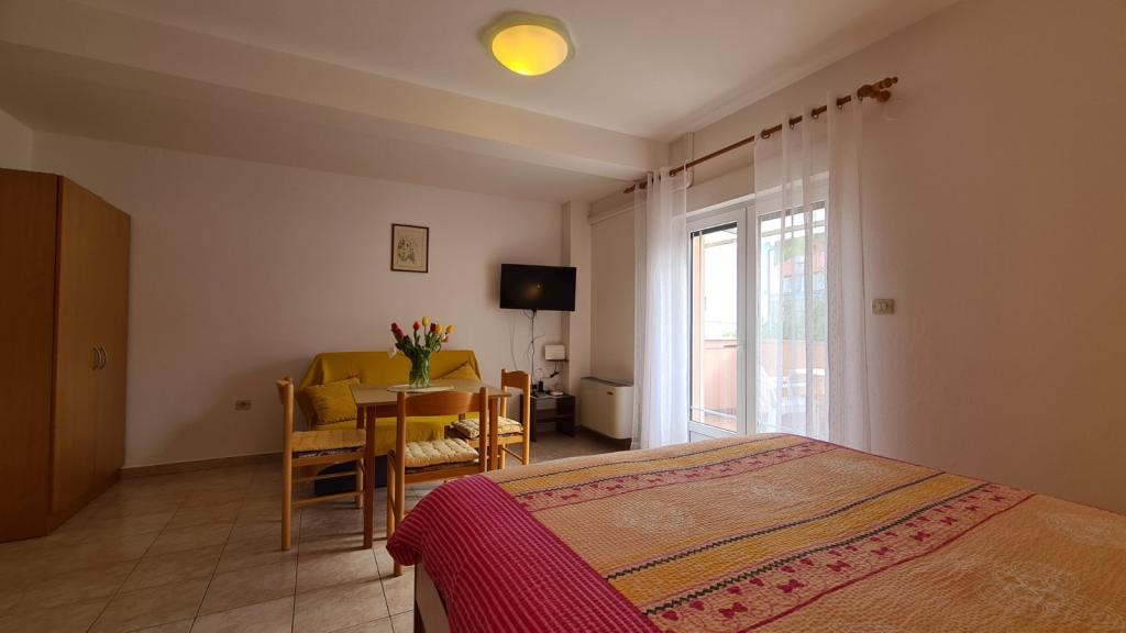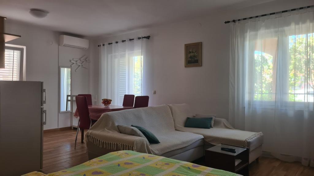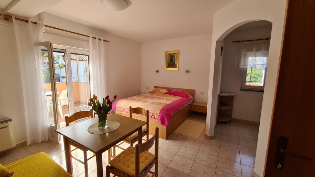 Huset ligger 5 minutters gang fra byens strand og også 5 minutters gang fra den gamle del af byen, i nærheden er butikker, cafeer, restauranter og andre faciliteter nødvendige for et ophold på et sted. Studielejligheden på 1. sal har direkte indgang via trapper kun til egen lejlighed.