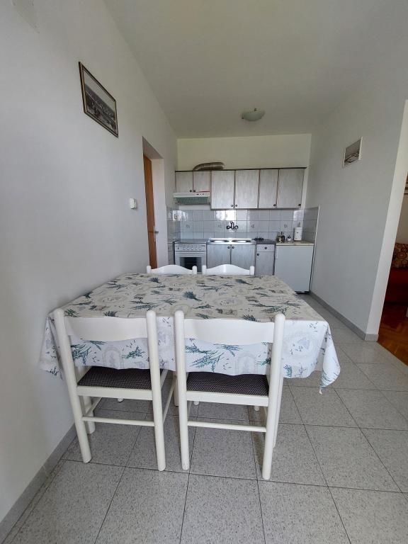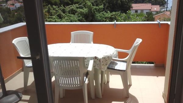 Meget flot lejlighed med en betagende udsigt. Værterne bød os pænt velkommen, lejligheden er lys og luftig. Køkkenet er veludstyret. Terrassen er dejlig og rummelig, ligesom værelserne. Man kan gå til stranden fra lejligheden på et par minutter. Der er en smuk promenade langs havet til centrum af Rab, og det tager cirka 20 minutter at gå. Rolig del af byen, om morgenen kan man kun høre fuglenes kvidren.