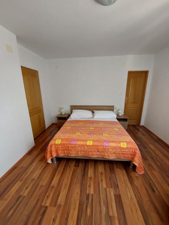 Jeg vil anbefale disse lejligheder til alle. Lejligheden for to, hvor vi boede i to uger, er udstyret med alt hvad du behøver, pænt og meget rent. Da vi ankom, blev vi mødt af en kold drink, hvilket er et rigtig fint tegn på opmærksomhed. Hvert par dage gav ejeren os rene håndklæder. Lejlighederne er beliggende i en rolig del af byen, så aftenerne på terrassen var smukke, og alligevel kan du nå byen og stranden til fods langs en smuk promenade ved havet, ideel beliggenhed. Værterne er mere end venlige, høflige, gæstfri, vi har kun rosende ord for dem. Denne indkvartering og det samlede indtryk af os har en rating på 10 plus!