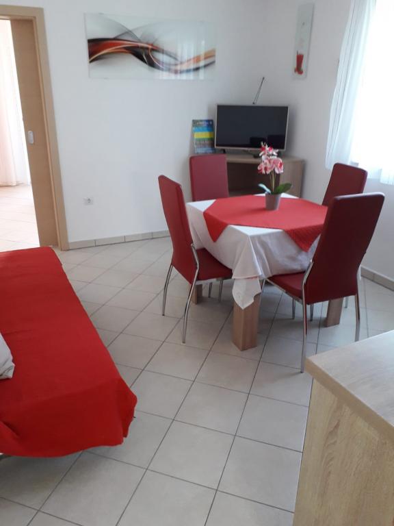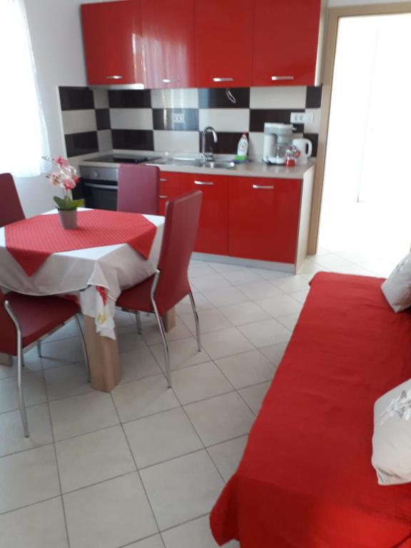 Første gang vi var på Rab, men bestemt ikke den sidste, Rab er smuk, men vi var henrykte over værternes tilgang og gæstfrihed, lejligheden er helt ren og pæn med alt hvad du har brug for, terrasse og smuk olivenlund, frugtplantage og blomster er en ferie for sjælen, og skyggen er hele dagen, der er ikke behov for aircondition, det glæder os især, om aftenen ideel til en gåtur til centrum 10 min, tak Sandra endnu engang, især på kagen perfekt