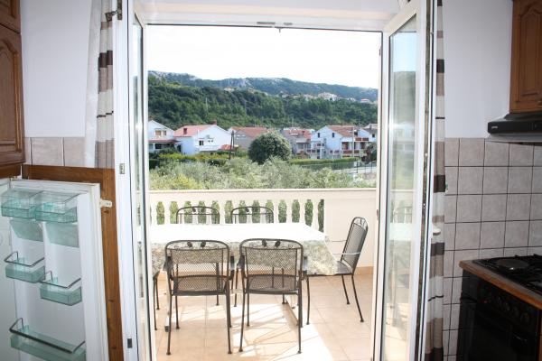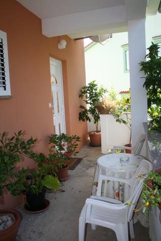 Vi boede i en lejlighed i stueetagen med et soveværelse, lejligheden er pæn, terrassen er skyggefuld hele dagen med udsigt over olivenlunden. En behagelig lejlighed, vi havde ikke brug for aircondition. Værterne var venlige og imødekommende, vi blev budt velkommen med en hjemmelavet Rab-kage, og da jeg elsker figner, plukkede min tante dem til mig. Jeg kan anbefale.