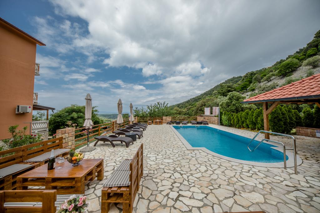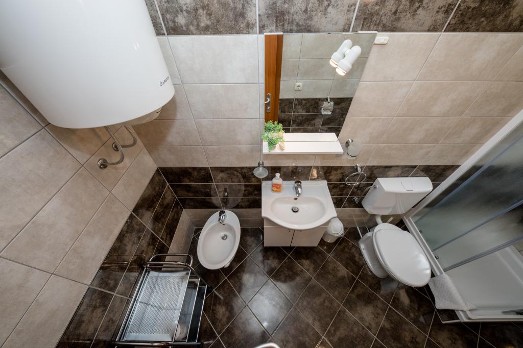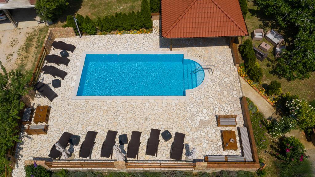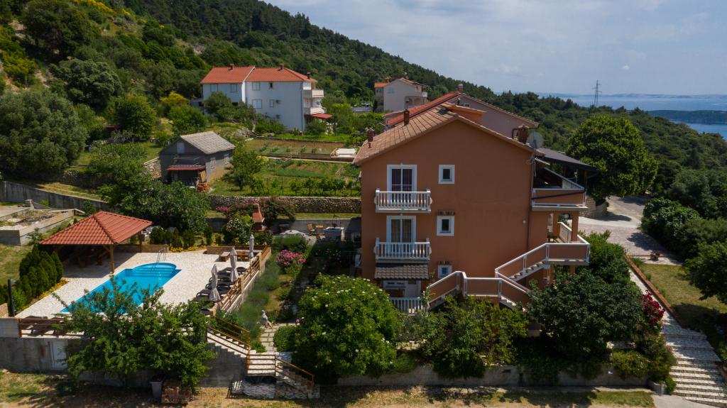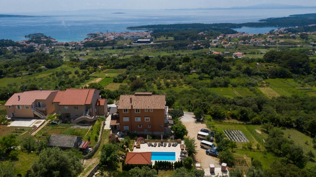 Moderne udstyret lejligheder 350 meter over havets overflade i en stille landsby i Mundanije på øen Rab kaldet Šćerbi. Anlægget ligger cirka 2-3 km fra havet, centrum og alle andre vigtige steder, hvilket er cirka 10 minutter i bil. Bygningens placering byder på en smuk udsigt fra alle terrasser og altaner på hele øen og den største del af Kvarnerbugten. Roen og ikke så meget trafik i vores by byder på en perfekt og afslappende ferie i ly af natur og vidunderligt sommersolskinsvejr. Der er en stor parkeringsplads ved siden af huset, og bag huset er der en smukt lavet swimmingpool og en solplads ved siden af.