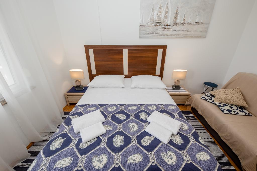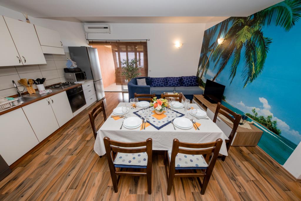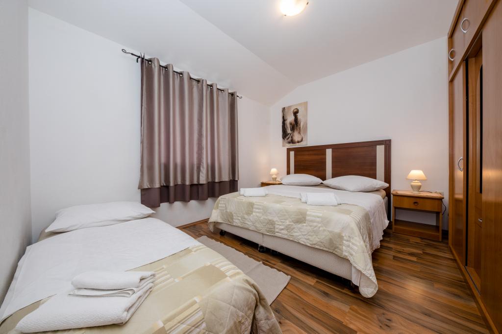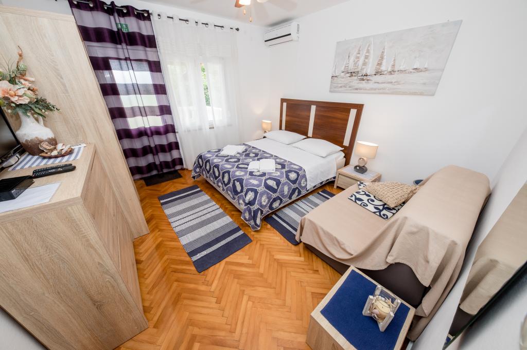 Læs mere IndkvarteringsenhederLejen betales den første dag for turistens ankomst til boligenheden. Der betales forud ved bestilling af boligenheden. Størrelsen af forudbetalingen aftales via e-mail. Indtjekningsdag og udtjekningsdag er kun på lørdage, og minimumsantallet af nætter er 7 nætter. Ankomsttidspunktet (check-in) er fra kl. 15.00 til 23.00, og afgangstidspunktet (udtjekning) er indtil kl. 10.00. For hver ekstra person over boligenhedens normale kapacitet er prisen 15 EUR. Der opkræves også et rengøringsgebyr på EUR 70 (én gang pr. reservation). Tilstedeværelsen af kæledyr i boligenheder (hunde, katte...) opkræves EUR 15 per kæledyr per nat.