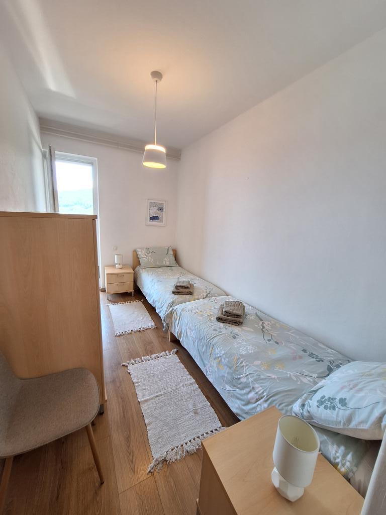Vi var her i en uge i begyndelsen af juli 2024 (to familier med små børn i to A4-lejligheder). Lejlighederne ligger på samme etage og har fælles veranda med siddepladser og udsigt over bugten. Huset ligger omkring 10 minutter fra stranden (trapper fører til stranden). Smukt møblerede lejligheder, udstyret køkken (brødrister, kedel, komfur med ovn osv.). Aircondition, håndklæder og grundlæggende hygiejneartikler på badeværelset. Gratis parkering ca. 50m fra lejligheden på en lille offentlig parkeringsplads. 5 minutters gang fra travlheden på hovedpromenaden, så aftenen er rolig. For shopping inden for 10 minutters kørsel, hvor du finder Lidl, Spar og lokale butikker. Vi var meget tilfredse her og ville elske at komme tilbage. Bare en lille klage, madrasserne var meget bløde, men det kan overleves.