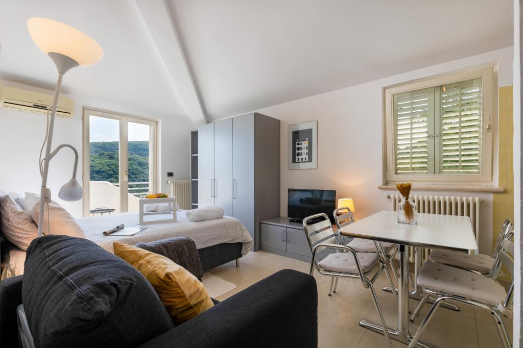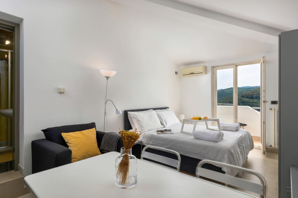 Vi reserverede studiet direkte fra værten i en uge i august. Værtsdamen er meget venlig, hjælpsom og åben; vi talte flere gange. Indkvarteringen er meget ren, nyrenoveret, og omgivelserne er smukke, ligesom på billederne. Vi modtog friske håndklæder midt på ugen, og køkkenet var også meget veludstyret. Du kan parkere på gaden under huset på en privat parkeringsplads, sikkert. Udsigten er fantastisk, og stranden er tæt på. Det er rigtigt, at man skal op ad mange trapper, men hele Rabac er kuperet, så vi forventede det. Tak!