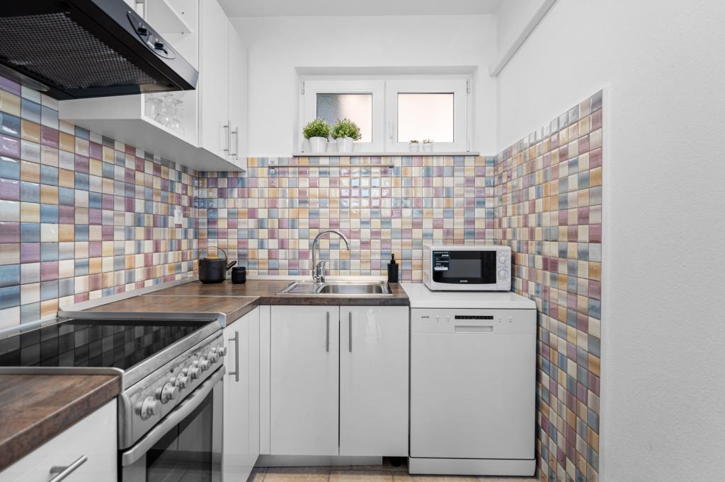 Bedøvelse placering med super udsigt over havnen og strandpromenaden. Lejligheden er fuldt udstyret, alt rene og velholdte, er intet mangler. Meget indbydende, opmærksomme og venlige udlejer med hele familien. Bedste personlig pleje. Meget velsmagende bages slik fra Sanja. Der er absolut intet at klage over. Meget hilsner til datter og børnebørn Theresa og Joseph