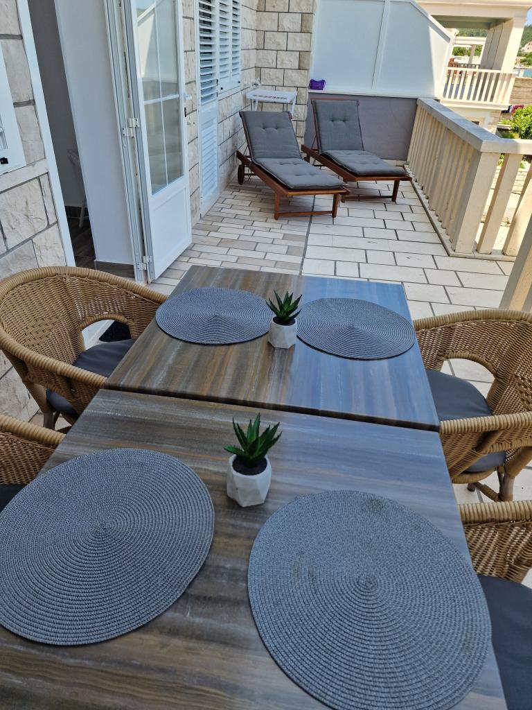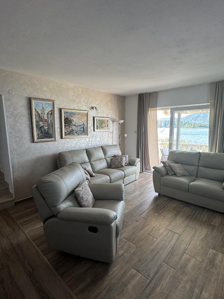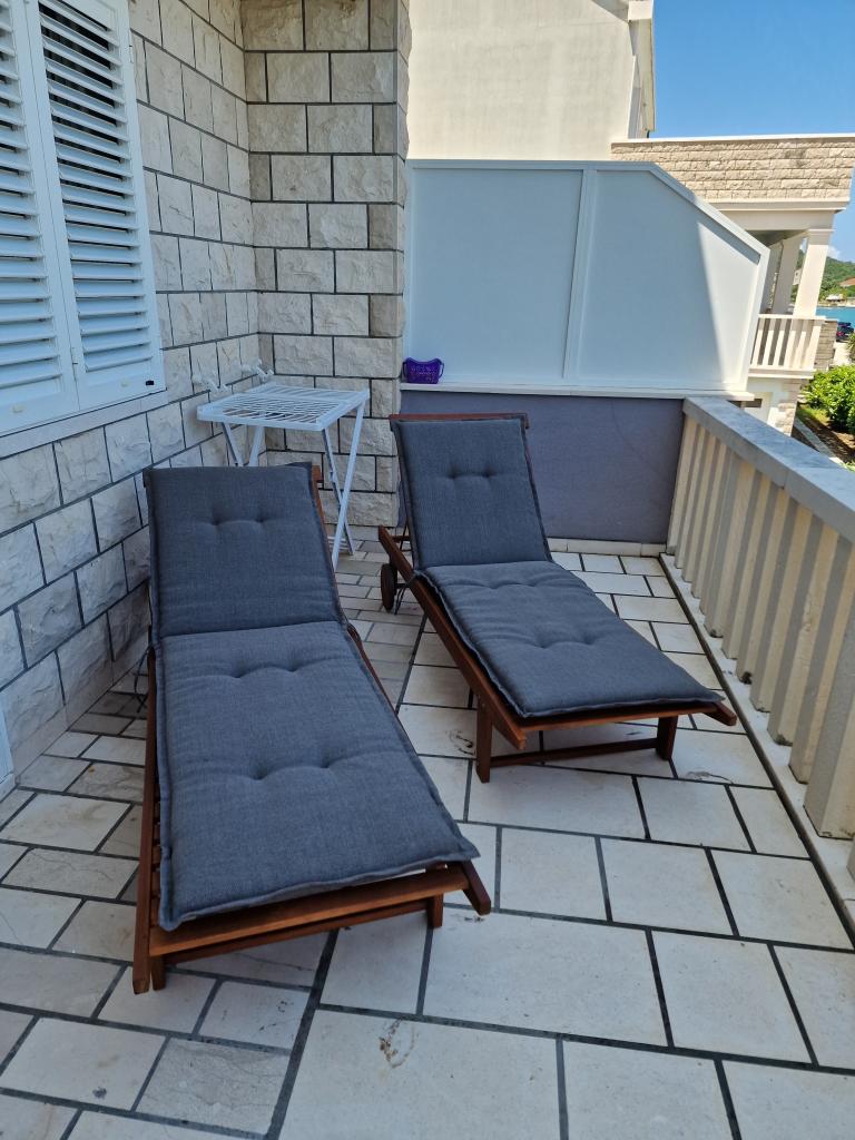 Min kæreste og jeg elskede Deluxe-lejligheden, hvor vi boede i 10 dage. Lejligheden er ren og har alt, hvad man behøver, hvis man kan lide at blive hjemme og lave mad, slappe af på den komfortable udtrækssofa og se smart-tv eller nyde den dejlige havudsigt fra terrassen. Vi satte især pris på ikke at høre nogen af de andre gæster eller naboer, rulleskodderne i soveværelserne og airconditionen, som var kraftig nok til at køle hele lejligheden ned. Køkkenet er fuldt udstyret med service, gryder og pander, nogle krydderier og har ovn, mikrobølgeovn, kaffemaskine, opvaskemaskine, nogle opvaskemaskinekapsler og opvaskemiddel. Der er også vaskemaskine, vaskemiddel og skyllemiddel. På badeværelset finder du showergeler, bodycremer og vatrondeller. Vi blev positivt overraskede og følte, at vi havde alt, hvad vi kunne få brug for. Beliggenheden er rolig, lige ved havet – perfekt for alle, der søger fred og ro. Den ligger cirka 15 minutters kørsel fra byen Korčula, hvor der er masser af gode (men dyre) muligheder for at spise middag, tage på en dagstur eller bare nyde en gåtur rundt i den smukke gamle bydel. Vinden var ret kraftig under vores ophold, hvilket betød, at det ikke var så varmt, og det var behageligt at tilbringe tid udenfor. I denne lejlighed har du dine egne liggestole på terrassen, men der er også nogle fælles liggestole til alle gæster lige ved havet i skyggen. Ejeren, Rina, er meget venlig og imødekommende – vi fik endda en velkomstfad med mad, hvilket blev meget værdsat. Jeg kan varmt anbefale dette sted; vi vil allerede gerne tilbage næste år!