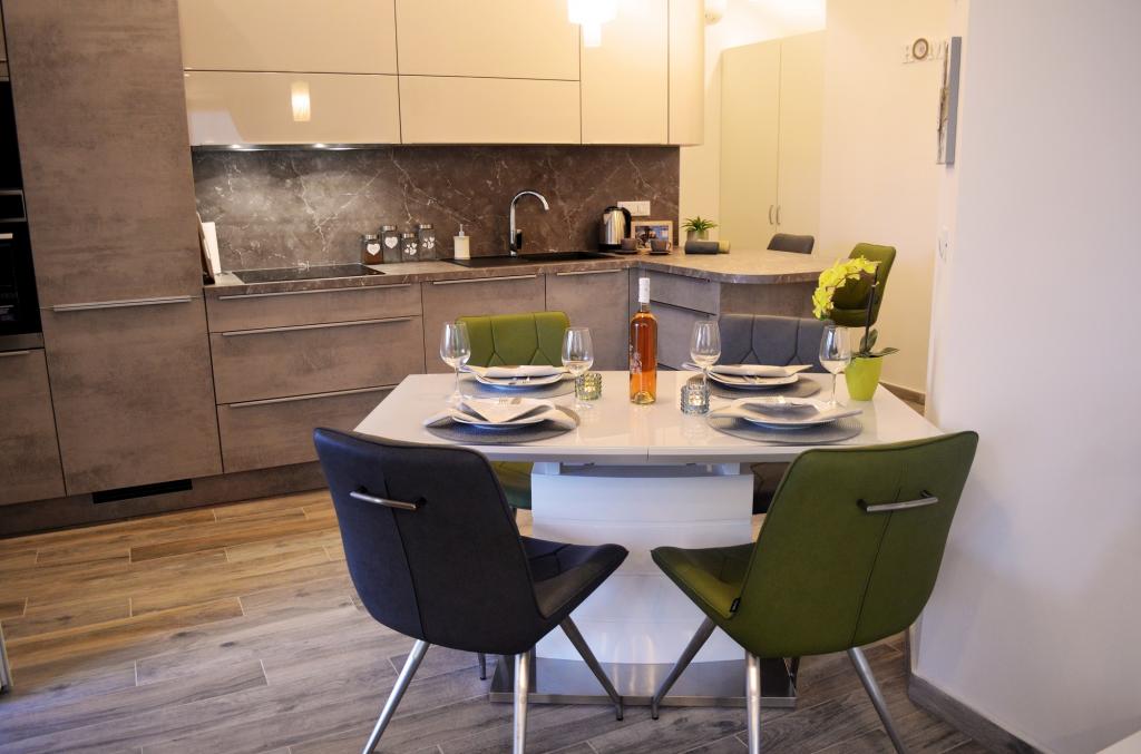 Værterne Rina og Jure er meget venlige og hjælpsomme. Vi kom meget trætte fra turen, og værtenes velkomst var en sand overraskelse. Smuk og moderne udstyret lejlighed, meget pæn og ren, så du føler at du er hjemme. Den private strand ligger på tværs af gaden, og havet er meget rent. Uforglemmelig ferie ... Vi kommer igen
