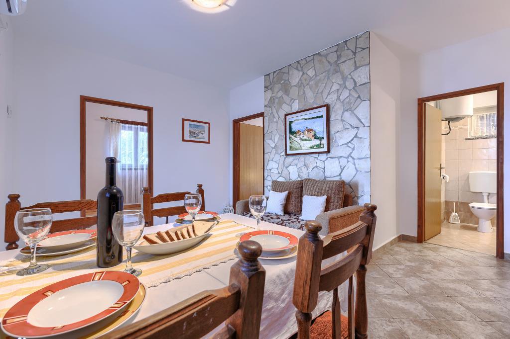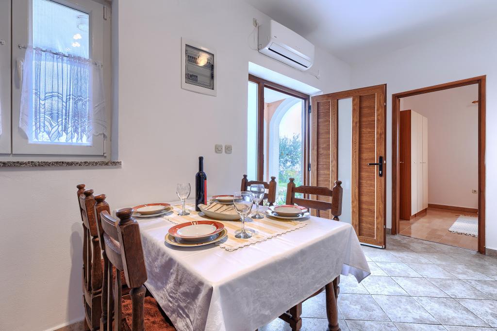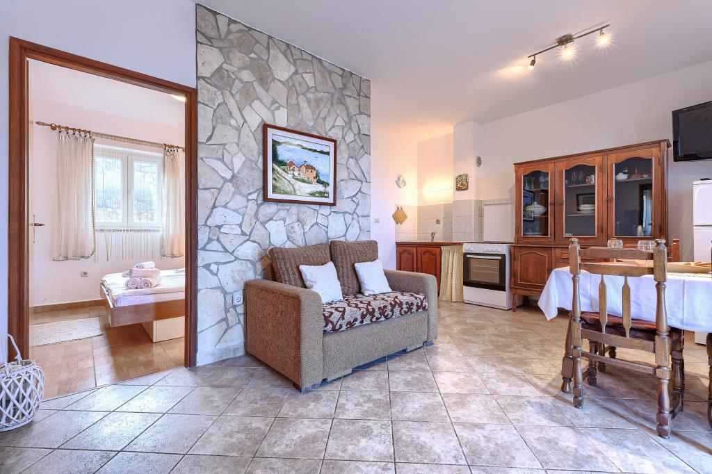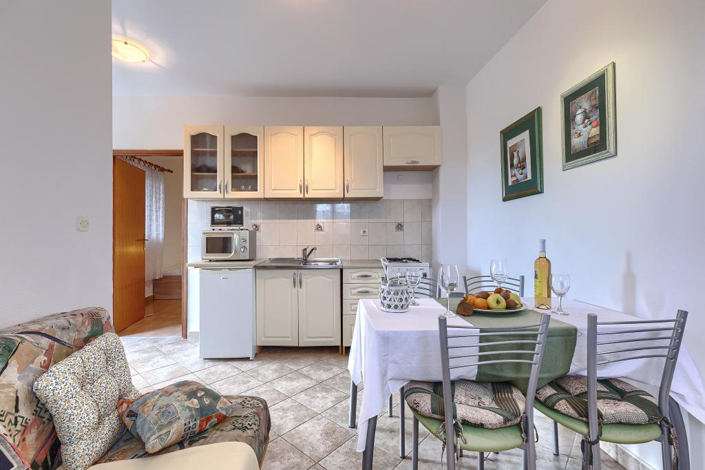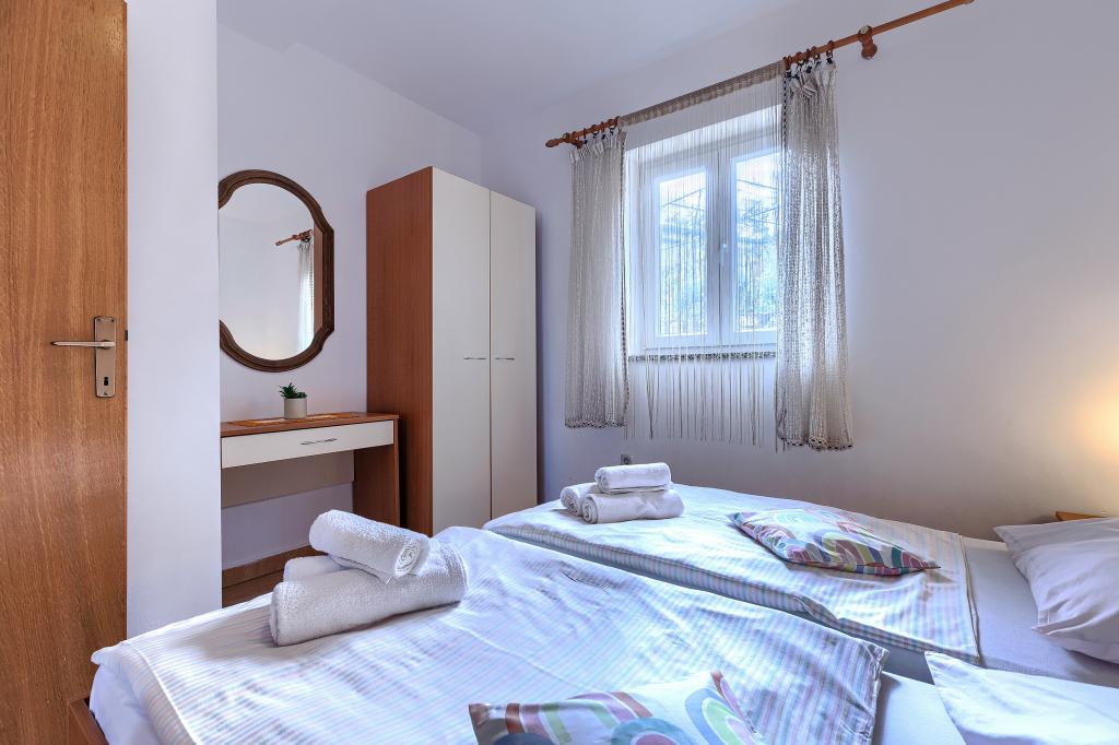 Hus med flere lejligheder i Drenje-byen. Det ligger 5 minutters kørsel fra stranden og 15 minutter fra byen Labin. Lejlighederne ligger i stueetagen. Lejlighederne tilbyder fuldstændig privatliv og mulighed for afslapning og hvile. En lejlighed er på 42 kvadratmeter, har et soveværelse med en dobbeltseng og mulighed for at bruge en ekstra seng. Stue med spisestue, køkken med alle nødvendige apparater, terrasse med havudsigt, badeværelse. Den anden lejlighed er på 56 kvadratmeter, har to soveværelser, hver med en dobbeltseng. Stue med spisestue, køkken med alle nødvendige apparater, terrasse med havudsigt, badeværelse. Den nærmeste restaurant ligger 5 minutters kørsel væk, ligesom det nærmeste marked. Lejlighederne ligger i et roligt område med et behageligt naturmiljø - alt hvad du behøver for en perfekt ferie!