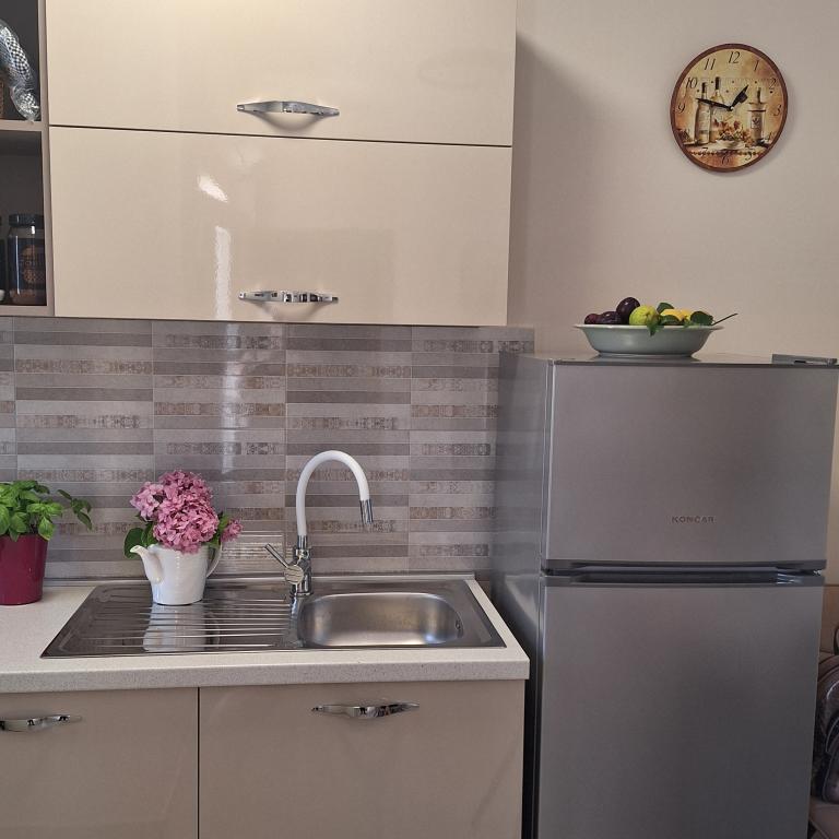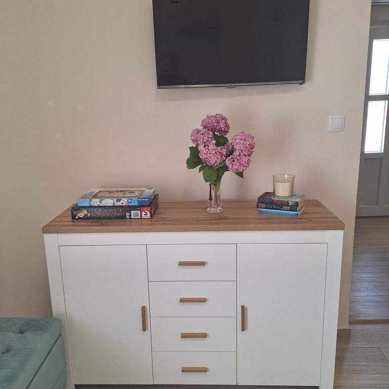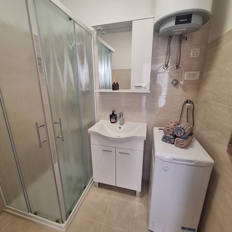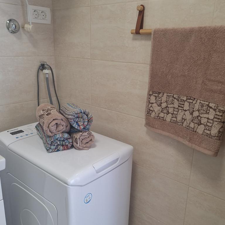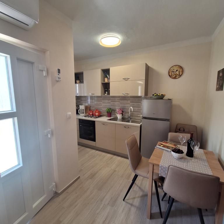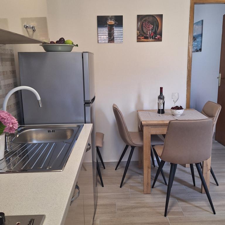 Det fuldt møblerede hus på 45 m2 ligger i Ražanac, en lille by med udsigt over Velebit. Huset ligger få minutters gang fra selve centrum af Ražanac, restauranter, apotek, butikker, posthus, fiskemarked, marked. . Den første butik er et minuts gang væk, Tommy supermarked er omkring 10 minutters gang væk. Der er parkering til en lille bil i huset. Huset består af køkken, badeværelse med toilet og bruser samt to soveværelser. Det har aircondition, opvaskemaskine, vaskemaskine, kaffemaskine, elkedel, ovn, køleskab med lille fryser, hårtørrer, tørretumbler, strygejern, strygebræt, håndklæder, service til 6 personer. Begge soveværelser har tv-apparater med max tv-modtager. Der er også gratis trådløs internetadgang. Foran huset er en terrasse med bord og stole og parasol.