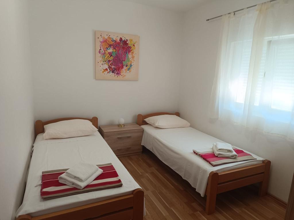 Fuldt udstyrede lejligheder i Ražanac beliggende 30 m fra havet og stranden. Apartments Ivan ligger 5 minutters gang fra centrum af Ražanac og andre nødvendige faciliteter såsom butikker, restauranter, markeder, slagtere, posthuse, klinikker, apoteker, biblioteker og hæveautomater. Hver lejlighed består af et køkken, to soveværelser, et badeværelse og en terrasse, har aircondition, satellit-tv, Wi-Fi og sikker parkering. Balkonen tilbyder en smuk udsigt over Velebit og havet. Apartments Ivan er indehaver af World Travel and Tourism Council (WTTC) Safe Travels-sikkerhedsmærket og det nationale Safe Stay in Croatia-sikkerhedsmærke. Vi tilbyder en service, hvor protokollerne for et sikkert ophold i Kroatien overholdes. Ražanac er en lille by ved kysten af Velebit-kanalen, nær byen Zadar, byen Nin og øen Pag, ideel til en fredelig og afslappende ferie med familien. I nærheden ligger nationalparkerne Paklenica, Kornati, Plitvice, Krka og naturparkerne Nordlige Velebit og Vrana-søen. Vær vores gæster og oplev en dejlig ferie i Ražanac.