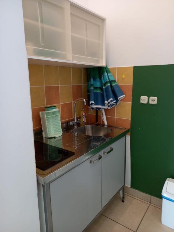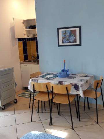 Anlægget er beliggende i et roligt område i den bredere bymidte, 4 til 5 minutters let gang til stranden og alle de nødvendige steder for en ubekymret ferie. I nærheden er butikker, en klinik, et apotek, et marked, caféer og alt det andet, du har brug for til en afslappende ferie uden at køre bil. Børn har adgang til en lukket, skyggefuld gårdhave og en sandkasse. Parkering er til rådighed for lejlighedsbrugere ved siden af huset og er inkluderet i prisen. Der er også grillplads i gården.