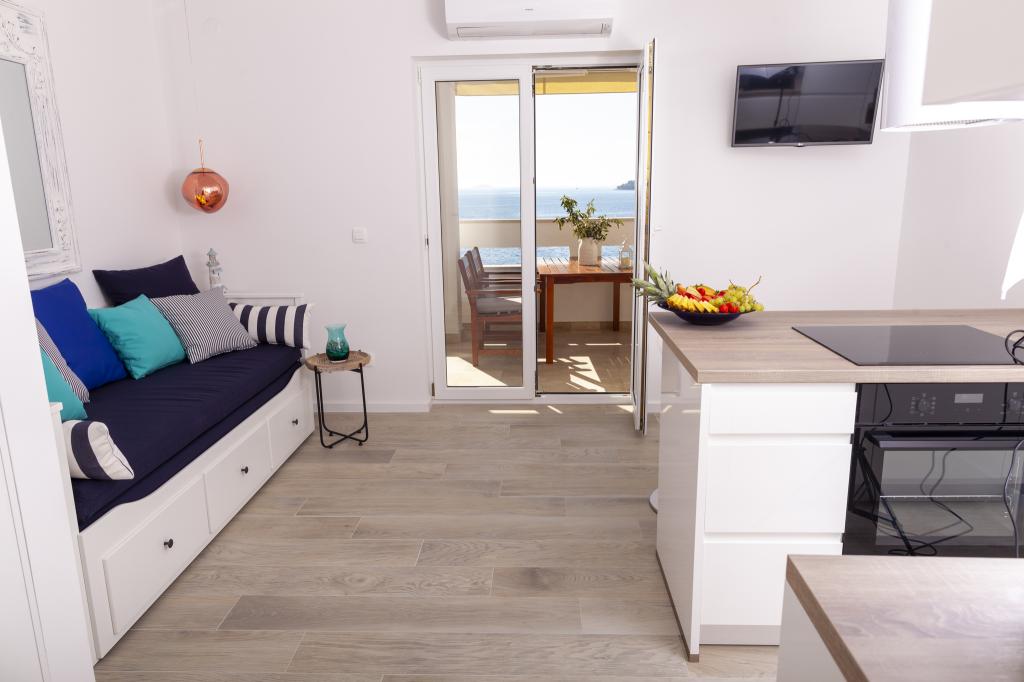 Lejlighederne er beliggende i første række fra havet mærkelige bogstaveligt gå op ad trappen, og du er på stranden. Lige ved lejligheden er der et lager af dem restauranter. Lejligheden er beliggende i et roligt område, så det altid har finder krybekælder. Der er også et slagtilfælde for børn. Hjem Folk er meget venlige. Det er derfor jeg kommer her hvert år i 15 år.