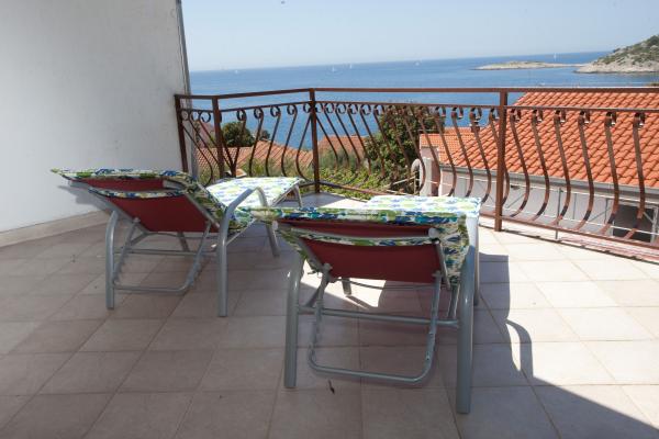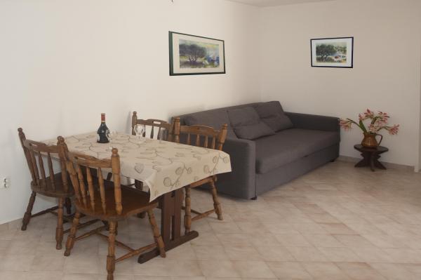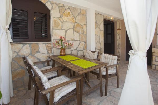 Huset med to lejligheder beliggende i en rolig bugt Stivašnica - Ražanj. Det ligger 5 km fra hovedvejen Sibenik-Split (mod syd - havet - på Podorljak). Begge lejligheder har to soveværelser, køkken, stue, badeværelse og en rummelig terrasse med udsigt over havet. Gæsterne kan benytte den udendørs grill og udendørs bruser. Det er et ideelt sted for en afslappende ferie, opdage den naturlige skønhed, solbadning og svømning i det varme og klare vand. I centrum er der flere cafeer, butikker, markeder med frugt, grøntsager og fisk, informativ turistkontor, dykkercenter, to restauranter med frisk fisk og skaldyr og bageri.