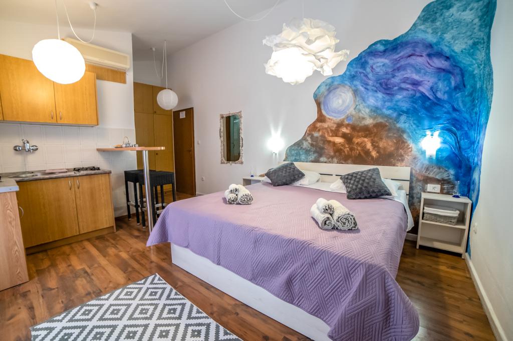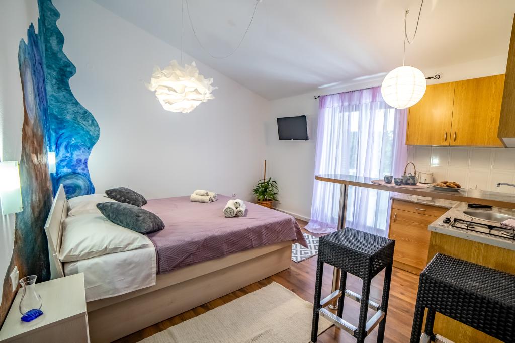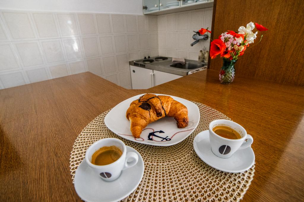 Som en del af vores lejligheder tilbyder vi også en restaurant med traditionelle dalmatiske retter tilberedt på den hjemlige måde. Som en del af boligen har vi også et marked med alle fornødenheder og dagligt frisk brød og andre dagligvarer. Mulighed for assistance til at organisere forskellige udflugter, dykning, fiskeri, bådudlejning og mange andre tilbud fra vores lokale samarbejdspartnere.
