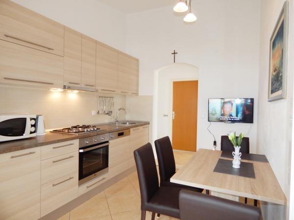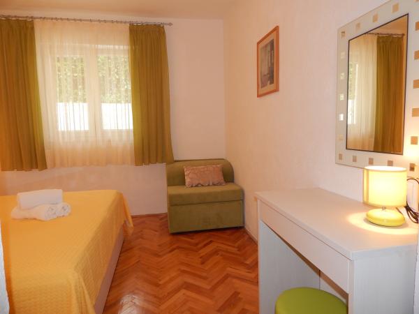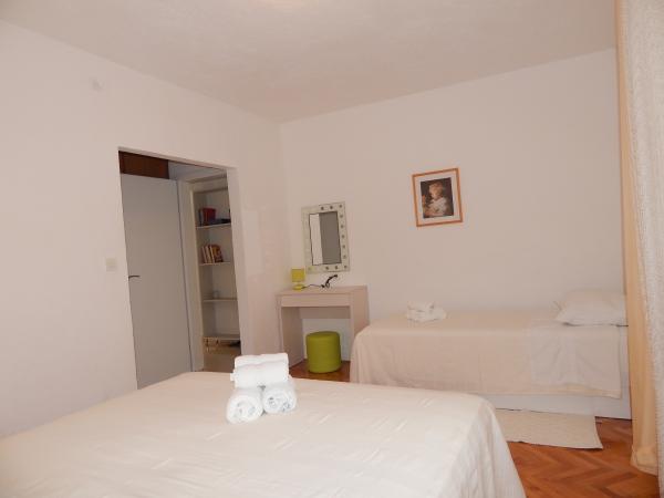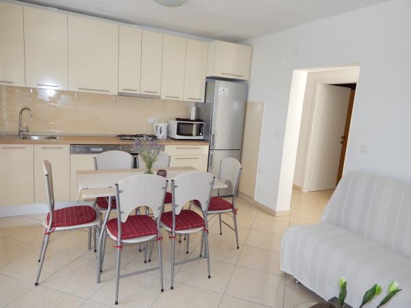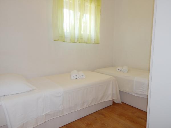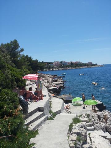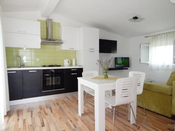 Nedeljko Apartments er beliggende i et roligt landområde på næsten uberørt natur og meget klart vand. Vi ejer 5 enheder af en dedikeret privat indgang og en parkeringsplads i retten bygningen. Lejligheder er fuldt udstyret og moderne. Vi er beliggende i den tredje række fra havet. Vi har 2 minutter til havet, og 10 minutter til centrum. Vi har en konkret finger for vores gæster. Bag bygningen er der en grill med et stort bord til gæster og behagelige og varmt udendørs bruser. Også i haven foran huset er topogan børn. Tæt på lejligheden er der et sportscenter for børn kunne lege frit.