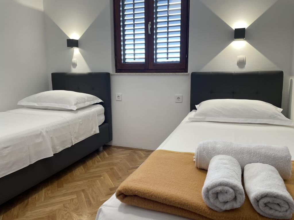 Turistskat er ikke inkluderet i prisen.Prisen inkluderer: velkomstdrink, gratis Wi-Fi, parkering, brug af grillrummet til madlavning. Det er muligt at leje en båd og nyde panorama-sightseeing. RAŽANJ er en lille turistfiskerby i det centrale Dalmatien, beliggende mellem Primošten og Rogoznica. Det ligger 12 minutters kørsel fra Rogoznica, 15 minutter fra Primošten, 20 minutter fra Trogir, 45 minutter fra Split og 60 minutter fra Krka Nationalpark. Denne traditionelle fiskerby har udnyttet den smukke kyst med klippe- og stenstrande, så gæster, der leder efter fred, er glade for at bo i familiehuse og pensionater.