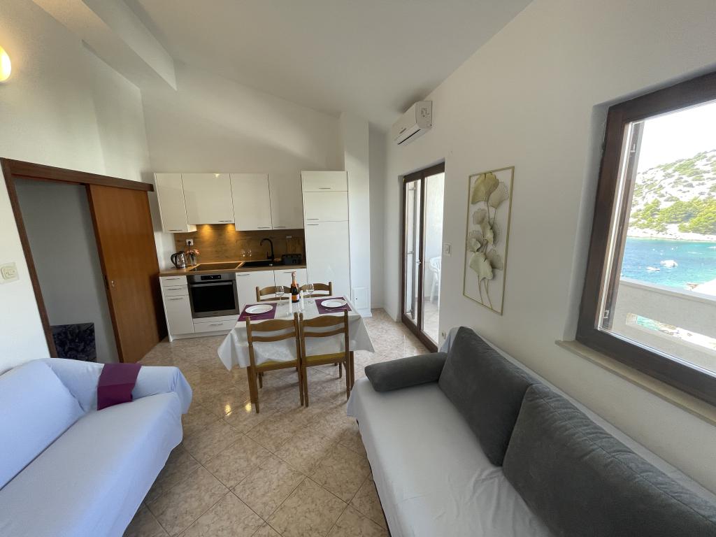 Lejligheder Soldić er nemme at finde i Ražanj i den rolige bugt Stivašnica. Huset har 5 lejligheder med direkte udsigt over havet. Lejlighederne har et soveværelse til to personer, køkken, stue med to senge, entre, toilet, altan eller terrasse og havegrill. Lejlighederne har AIRCONDITION. Lejlighederne har helt nyt udstyr, SAT-TV, Wi-Fi. opvaskemaskine, koge- og spiseredskaber og egen parkeringsplads. Fredelige omgivelser, velegnet til gåture, jogging, cykling med sightseeing i de maleriske autentiske dalmatiske landsbyer i området. Sengetøj skiftes hver 7. dag. Butikker, kaffebarer og restauranter og pizzeriaer ligger cirka 400 m fra lejligheden. Mulighed for leje af båd efter aftale. Afstand fra stranden, type strand: • 30 m ad trapper til strande med betontrappe; 100 m til børnestensstranden; 500 m til vilde strande. Havet er ekstremt rent og behageligt at svømme.