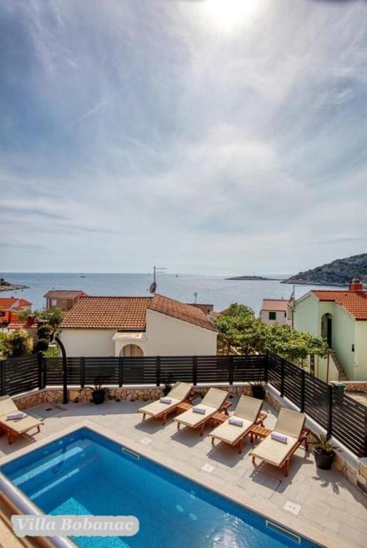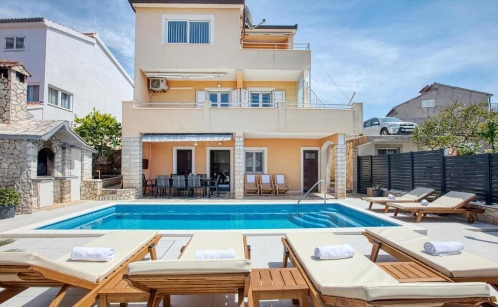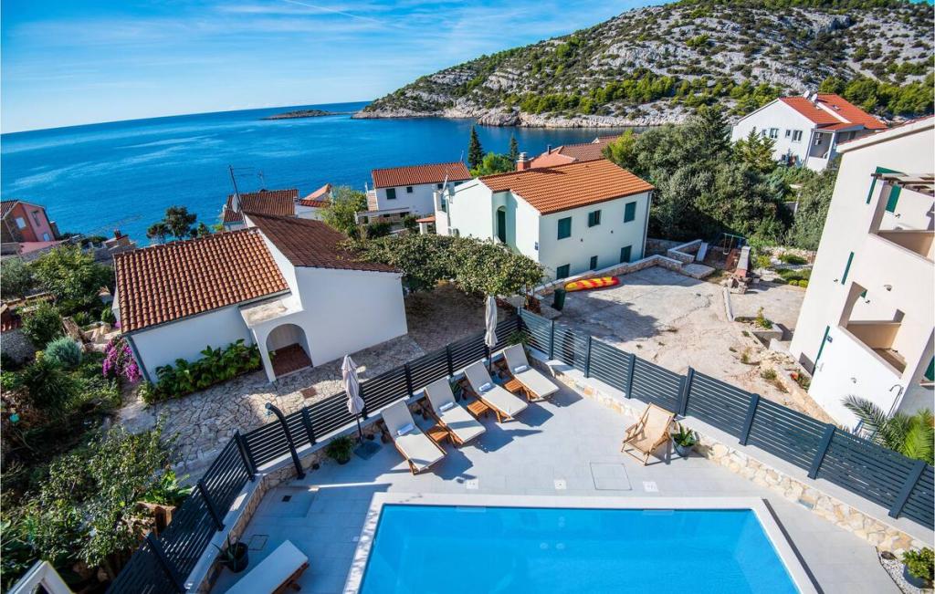 Nyd et nyrenoveret feriehus med opvarmet pool og smuk havudsigt, kun 73 meter fra stranden. Huset består af 3 enheder med i alt 5 soveværelser, 3 badeværelser og 3 køkkener. Privat lukket parkering, aircondition, grill og internet er inkluderet i prisen. Mulighed for fortøjninger til båden. Velkommen