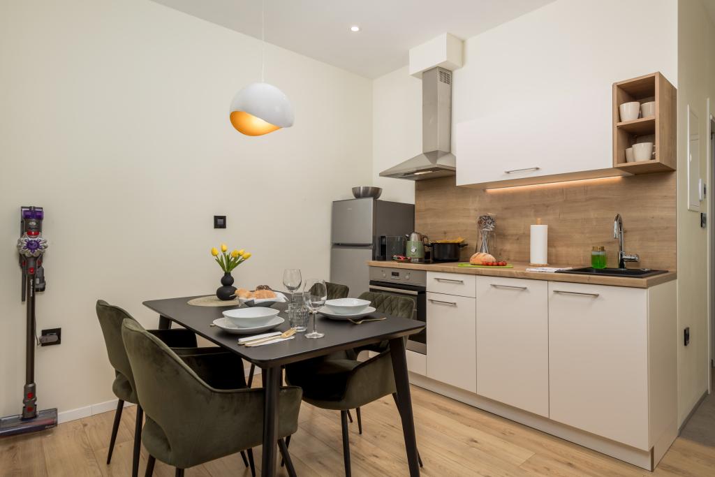Topkvalitetsindkvartering i centrum af Rijeka, 5 nye og fuldt udstyrede lejligheder, der vil give dig ideel komfort til dit ophold i Rijeka. Alle lejligheder har fuldt udstyret køkken, spisestue og stue med Netflix TV, moderne indrettede soveværelser med dobbeltsenge, badeværelser med bruser og toilet. Håndklæder og sengetøj er også tilgængelige i hver lejlighed.