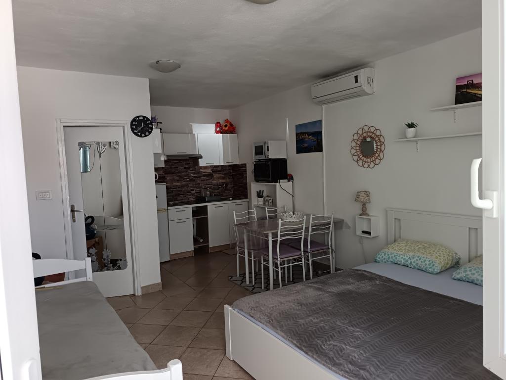 Pænt møbleret lejlighed i en rolig bugt 50 meter eller 3 minutters gang til stranden. Betonpromenade langs havet til byens centrum.