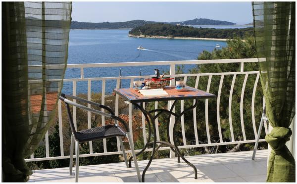 Dejlig lejlighed tæt fyrreskov, i en rolig gade, egnet til børn med smuk udsigt over havet. Stranden ligger 5 minutters gang fra lejligheden. Øen er forbundet med en kort bro til fastlandet og dækkede 70% af skoven. Rundt om øen, havet er en lang promenade. I nærheden er der masser af fisk restauranter med en rig tradition. Fælles ture til Krka og Kornati øerne. Turist skat, aircondition, internetadgang inkluderet i prisen.