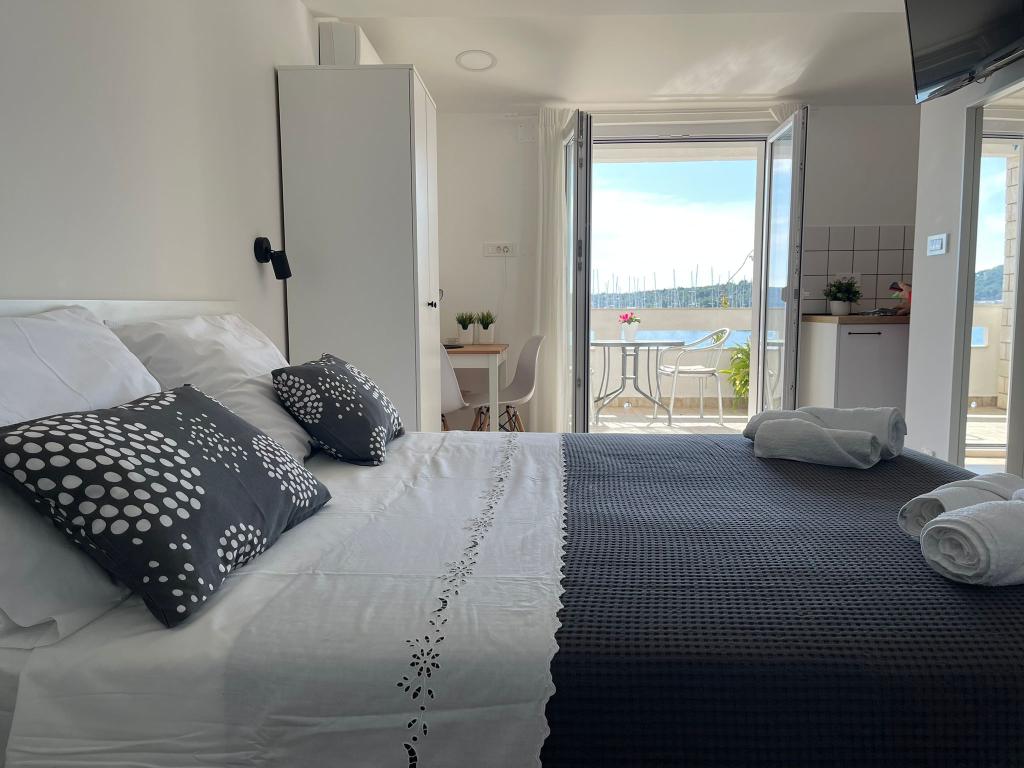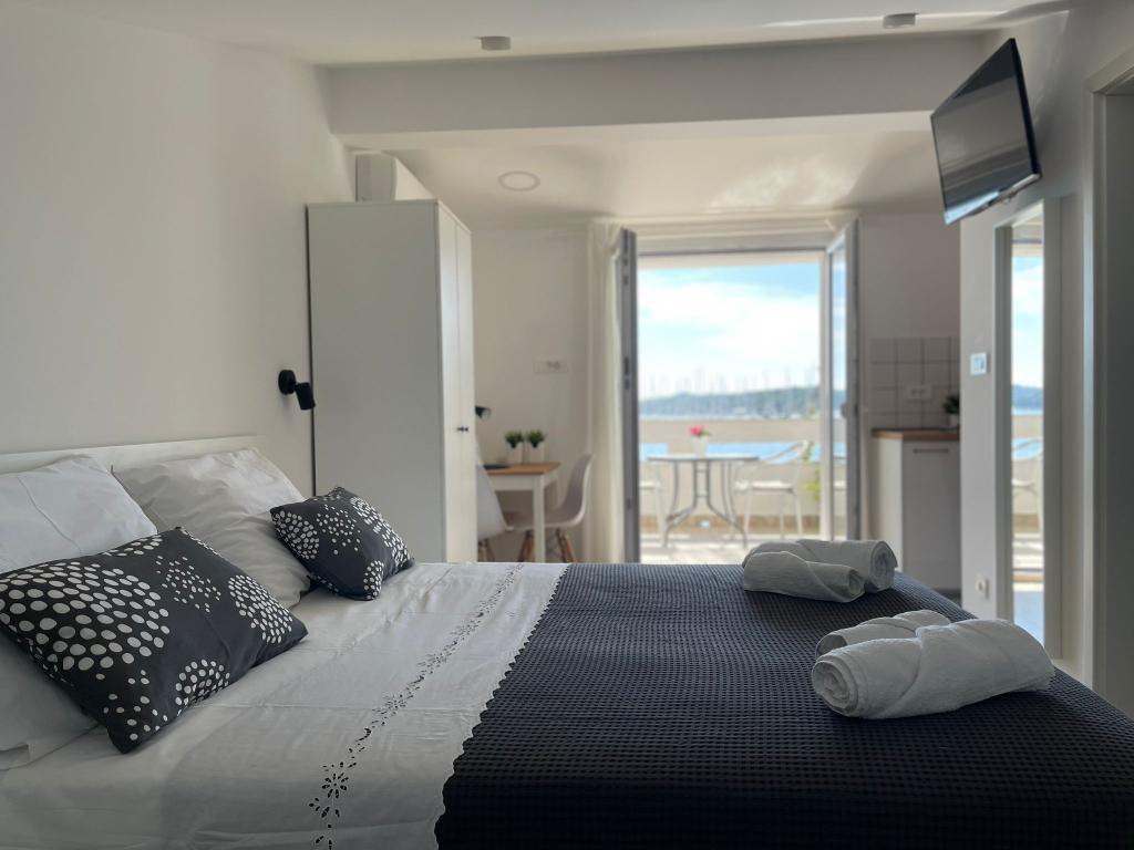 Lejlighederne er beliggende første række til havet. Stranden ligger 50 meter fra huset, du kan også svømme foran huset. Hver lejlighed har en separat terrasse med en smuk udsigt over havet. Privat parkering til en bil. Mulighed for leje af bådpladser til både op til 8 meter. Alle lejligheder har aircondition. Gratis WI-FI i hver lejlighed. Lejlighederne er fuldt udstyret med tallerkener og køkkenredskaber, hver lejlighed har mikroovn, kedel, komfur, køleskab, tv.