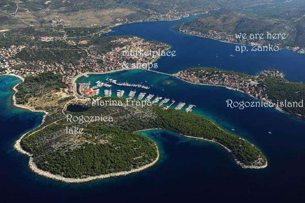 Vi har forsøgt at overføre glæden ved havet til vores lejligheder. Vi har arrangeret dem, så de udstråler hjemmets varme, samtidig med at de er enkle og funktionelle. Vi har udstyret dem med alt hvad du behøver for en perfekt ferie. Og de er igen så tæt på havet, at man ikke engang føler, at man er i en lejlighed. Når du kigger ud af vinduet, er havet altid i din ramme, mens solen sender dig ud til hvile fra hver terrasse. Vi ønsker, at du skal føle dig godt tilpas i vores lejligheder og bruge din dyrebare tid på den bedst mulige måde! Vi ligger helt for enden af den rolige landsby Zatoglav, overfor Rogoznica, som er ideel for folk, der elsker rent hav og fred. Afstanden til byen er 4 km, Primošten 10 km, Trogir 25 km, Šibenik 35 km, nationalparkerne Krka og Kornati er 39 km væk, Split 50 km... Vores lejligheder er en fredelig oase, hvor du kan nyde havet og en fremragende position for ture til byer med en rig fortid eller nationalparker...restauranter, barer, sportsaktiviteter...Og når du bliver træt, venter din fredelige oase på dig.
