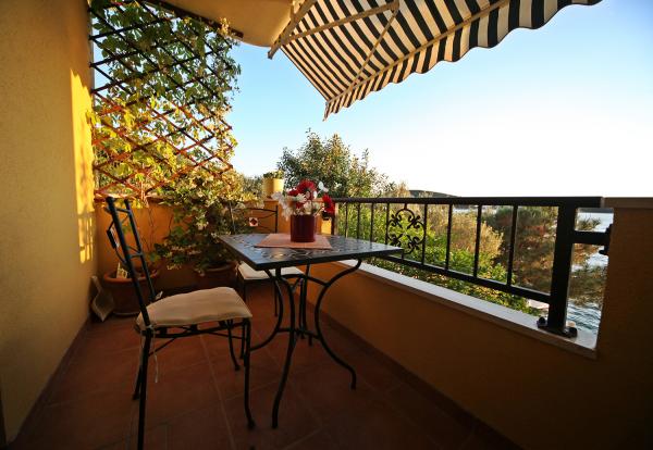 Fantastisk beliggenhed, store værelse, rent, velholdt, og udsigten fra balkonen .... Meget rart sted, rolige, adgang til havet kun for gæsterne på denne bygning, så der er ikke noget problem med et sted på vandet. Fred, ro, smilende mennesker. God base for de smukke omkringliggende landsbyer. Meget symtatyczni, smilende ejere. Jeg vil anbefale til alle. Vi vil helt sikkert gå tilbage :)