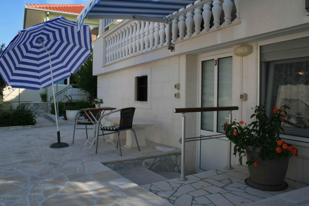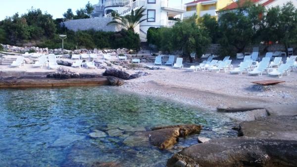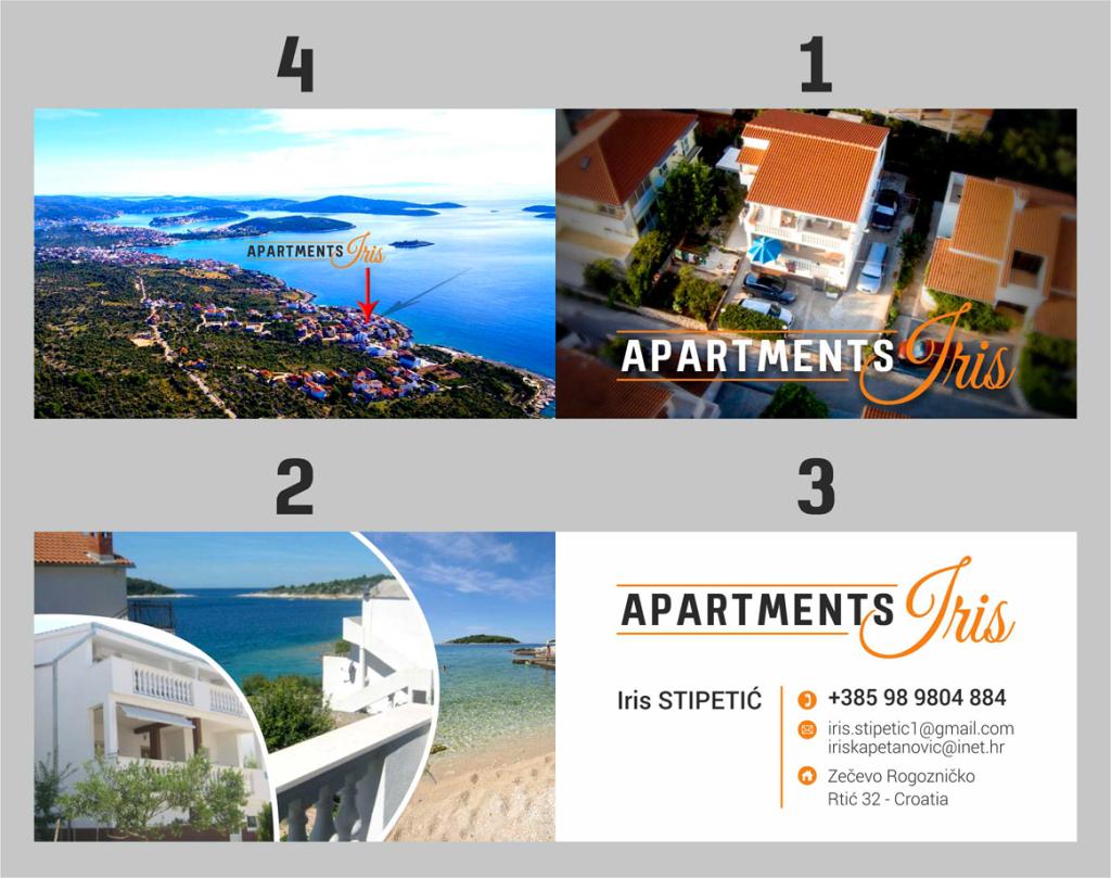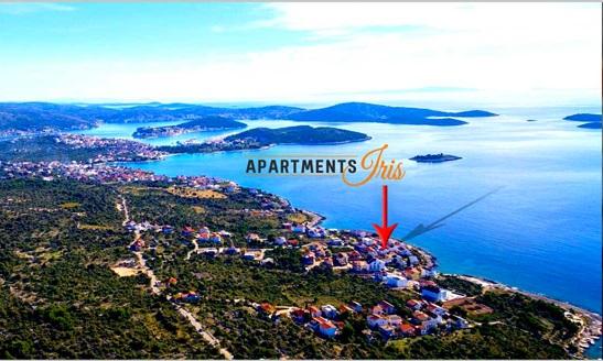 Iris Apartments er beliggende i en lille turistby Zecevo, anden række fra havet, 40 m fra smukt arrangeret sandstrand. Nær stranden ligger LIFE er rig på indhold, der tilbyder catering faciliteter (restauranter, liggestole, kølet drinks, kaffe, is). På stranden sidder de 4 liggestole, der ejes af værten, tydeligt mærket, og gæsterne kan frit bruge dem. Langs stranden ligger mindst JAZ, hvor du kan opdatere dig selv i en badedragt. Landsbyen leveres hver morgen med frisk brød og ruller transporteret af varevogne 7-9 timer om formiddagen. Den større by Rogoznica, som er kun 30 minutters gang væk promenade, som er egnet til sportsaktiviteter (cykling, jogging) eller 10 minutter i bil. Forsyningen af fødevarer er tilgængelige i supermarkeder (ved indgangen til Rogoznica ) og flere mindre forretninger, der ligger i byen Rogoznica.