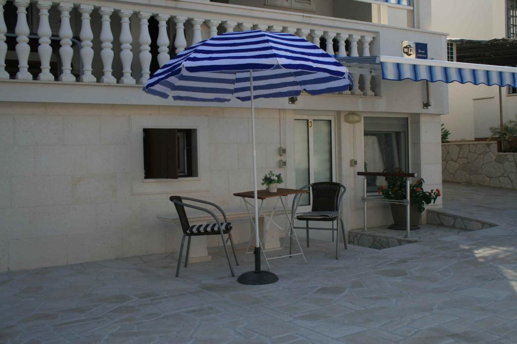 Jeg kan varmt anbefale at bo på Iris Apartments. Det er et vidunderligt sted. Rent, roligt og fri for folkemængder og travlhed. Stranden ligger kun to skridt væk. Der er liggestole ved lejligheden. Vandet er varmt og klart. Lejligheden er rummelig og fuldt udstyret med alt hvad man behøver til fire personer. Velkomstpakken i køleskabet er fantastisk. Vi håber på yderligere ophold. Mange tak for din gæstfrihed