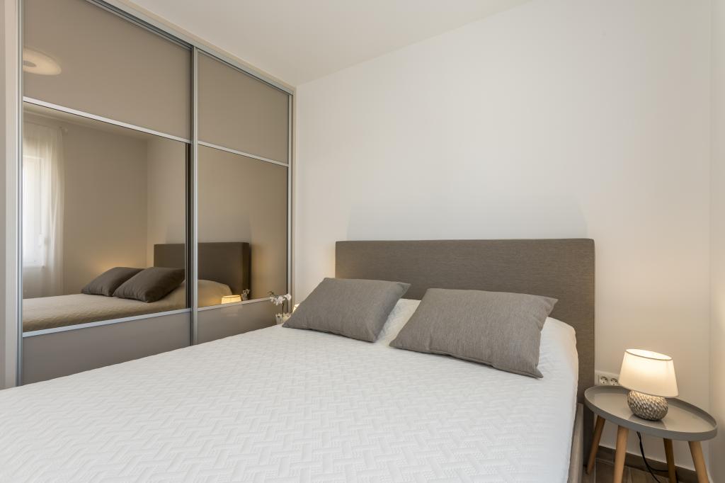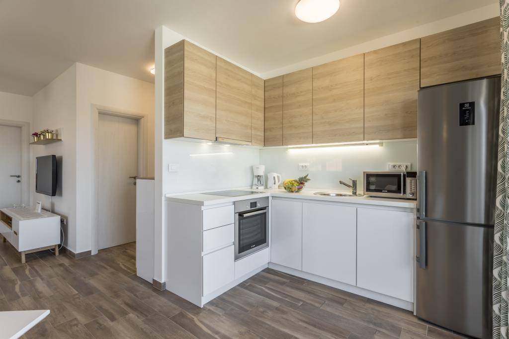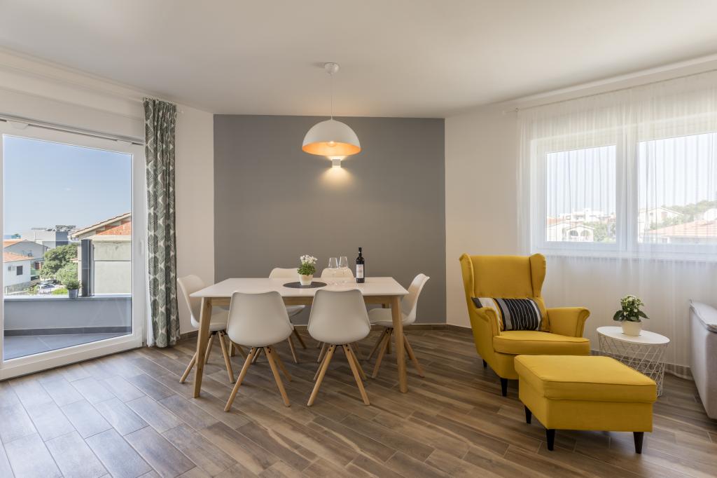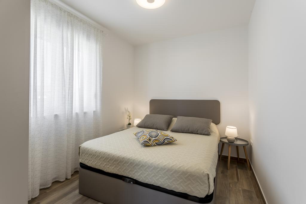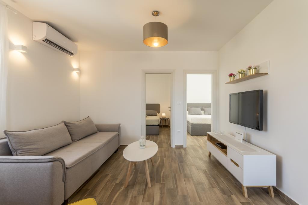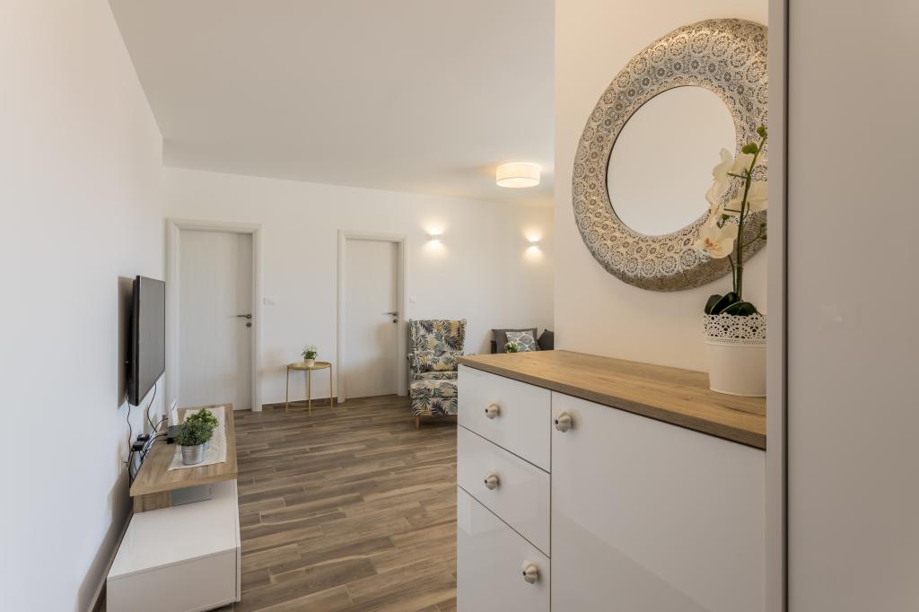 Alt er som i billedet, nyt og klart. Senge er usædvanligt høj kvalitet og komfortabel. Andet inventar og udstyr er kvalitet og smag kombineret. Klimaanlægget er tavst, og det udmattende af udendørs enheder høres ikke, så du kan nyde terrassen og sove i det åbne vindue. Køkkenet er fuldt udstyret, hvis du vil lave mad. Havet og den konkrete strand ligger 1 minuts gang væk, mens stenstranden har en 3-4 minutters gåtur langs havet. Indkvarteringen er ideel til en rolig familieferie. Vi var 4, vi tilbragte 9 dage i lejligheden og vi alle følte i lejligheden og var mere end glade! Mr. Damir og hans kone er meget venlige.