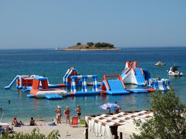 Turistskat er inkluderet i prisen. Dokumentation for reservationsbekræftelse ved reservationLejligheden vil være udstyret med de basale fornødenheder. Hver dag kan du tage på forskellige udflugter fra Rogoznica eller Primošten, såsom at besøge Krka Nationalpark, bådture rundt i Kornati Nationalpark-øgruppen, rafte på Cetina-floden, leje cykler, knallerter og elektriske scootere. På vores strand er der kaffebarer med udsigt til den smukke solnedgang, samt et topmoderne vandland til underholdning for de yngste. For cykelentusiaster er der et stort udvalg af MTB-ruter i området. Da Rogoznica ligger midt i Adriaterhavet, er der 3 byer under UNESCO-beskyttelse i vores nærhed: Šibenik 30 km, Trogir 20 km og Split 50 km med det berømte Diocletians Palads og Poljud-stadionet, hvor ULTRA-festivalen afholdes.