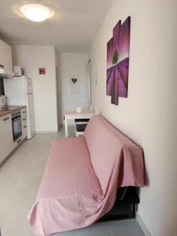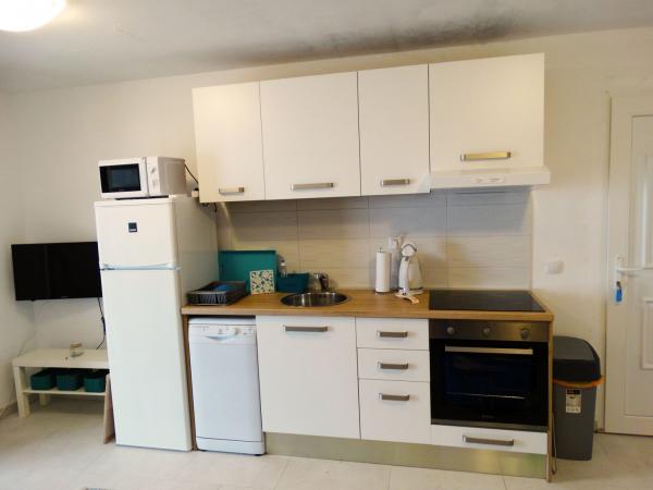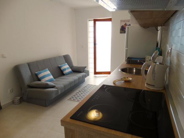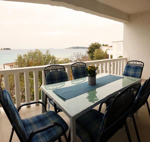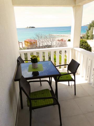 Fuldt og moderne udstyrede lejligheder er beregnet til alle, der ønsker en fredelig familieferie. Lejligheden ligger i første række til havet og har direkte adgang fra haven til stranden. Den mindre lejlighed er udstyret med 2 senge og en sovesofa. Den store lejlighed er udstyret med 2 enkeltsenge, 1 dobbeltseng og en sovesofa. Køkkenerne er udstyret med keramiske kogeplader og ovne, mikrobølgeovn, kombineret køleskab og opvaskemaskine (stor lejlighed). De moderne badeværelser har brusere, toiletter, håndvaske og vaskemaskine (stor lejlighed). Hver lejlighed har spiseborde med stole. På terrasserne er der: et bord med 3 stole (lille lejlighed) og et bord med 6 stole (stor lejlighed). Lejlighederne er også udstyret med tv, WiFi og aircondition. Der er parkering til flere biler. Haven er dekoreret med hjemmehørende planter, oliventræer, laurbær og de fineste lokale figner.
