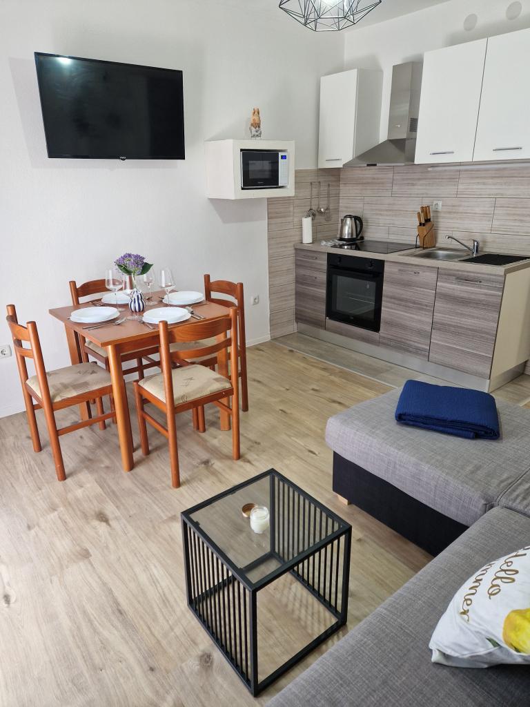 Hej alle sammen! Jeg vil gerne benytte lejligheden til at takke Dem og fru Milena for jeres gæstfrihed. Jeg vil klart anbefale lejlighed A4, fordi den har en fantastisk beliggenhed (bogstaveligt talt et minuts gang til stranden), bilen kan sikkert parkeres lige foran balkonen. Hvad angår lejlighedens udstyr, er lejligheden moderne udstyret, pæn, ren, tilgængelig (den har en terrasse og en balkon med en smuk udsigt over havet). Præcis som vist på billederne, sådan er tilstanden... Jeg betragter ikke manglen på aircondition som en ulempe, fordi, som jeg allerede har nævnt, stranden er i nærheden, og du kan altid forfriske dig, og nætterne er behagelige, og lejligheden kan køle godt ned. Jeg vil klart anbefale lejligheden til alle, især til folk der ikke kan lide at komplicere tingene Da I var fremragende værter, er vi glade for at vende tilbage igen i år!