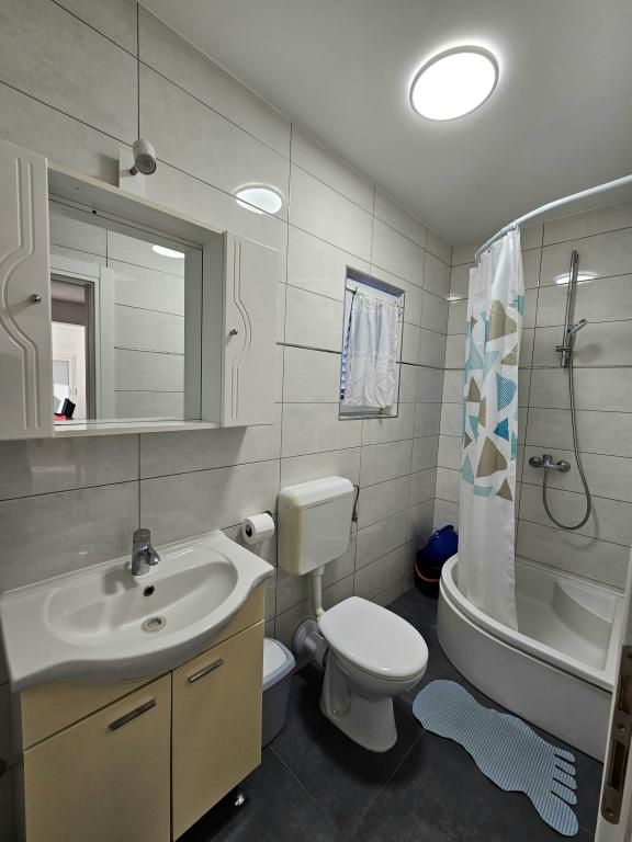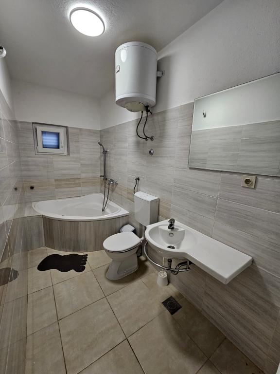 Et eller andet sted mellem himlen og havet: Lejligheder mimrer i Lozica-bugten i en lille fiskerby Rogoznica, ca. 80 meter fra havet og giver dig et perfekt sted at hvile, hvor den gyldne sol kaster net på utallige bugter i havet. som en tåre, og mistralen brummer let om sommeren, kom den tilbage til os. Fyrreskoven beskytter mod solen, og det naturligt beskyttede dybe træk giver et sikkert tilflugtssted for enhver sejlere. Stenhuse i centrum, på den lange promenade ved havnefronten, giver byen den specielle middelhavsflair. Du kan nyde legenderne om oprindelsen af Zmajevo-søen oko og eventyrere, der dykker ned i den undersøiske hule Zmajevo uho og udforsker havbunden, der skjuler adskillige søvrag, som det fremgår af rekonstruktionen af det antikke vrag af et gammelt romersk skib, der er overfyldt med amforaer. Nyd med os !!!