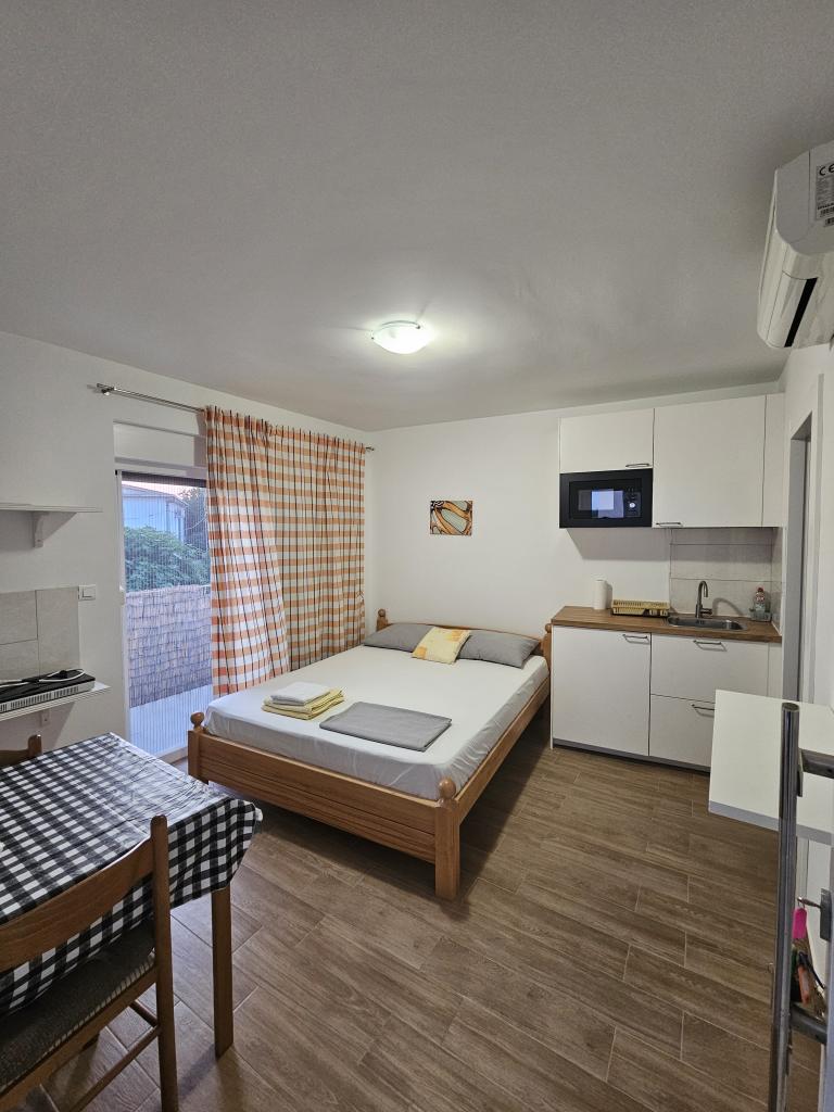 Jeg var meget overrasket, da vi ankom. Billederne af lejligheden var ikke de bedste, og det viste sig at være en typisk kroatisk lejlighed, fuldt udstyret med en smuk, stor terrasse. 5 minutter til havet og en smuk strand der, nok den smukkeste i byen. Værterne meget søde og hjælpsomme. Jeg anbefaler stærkt.