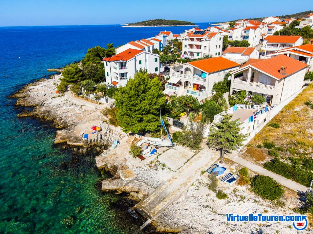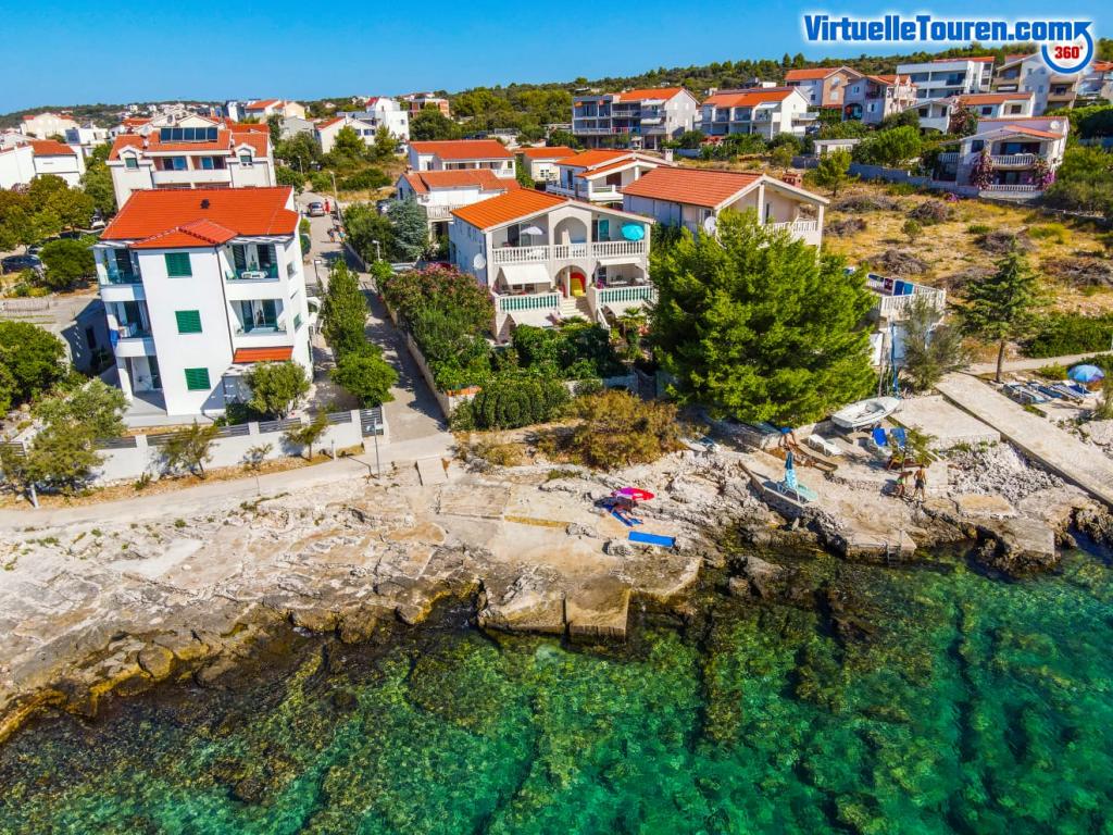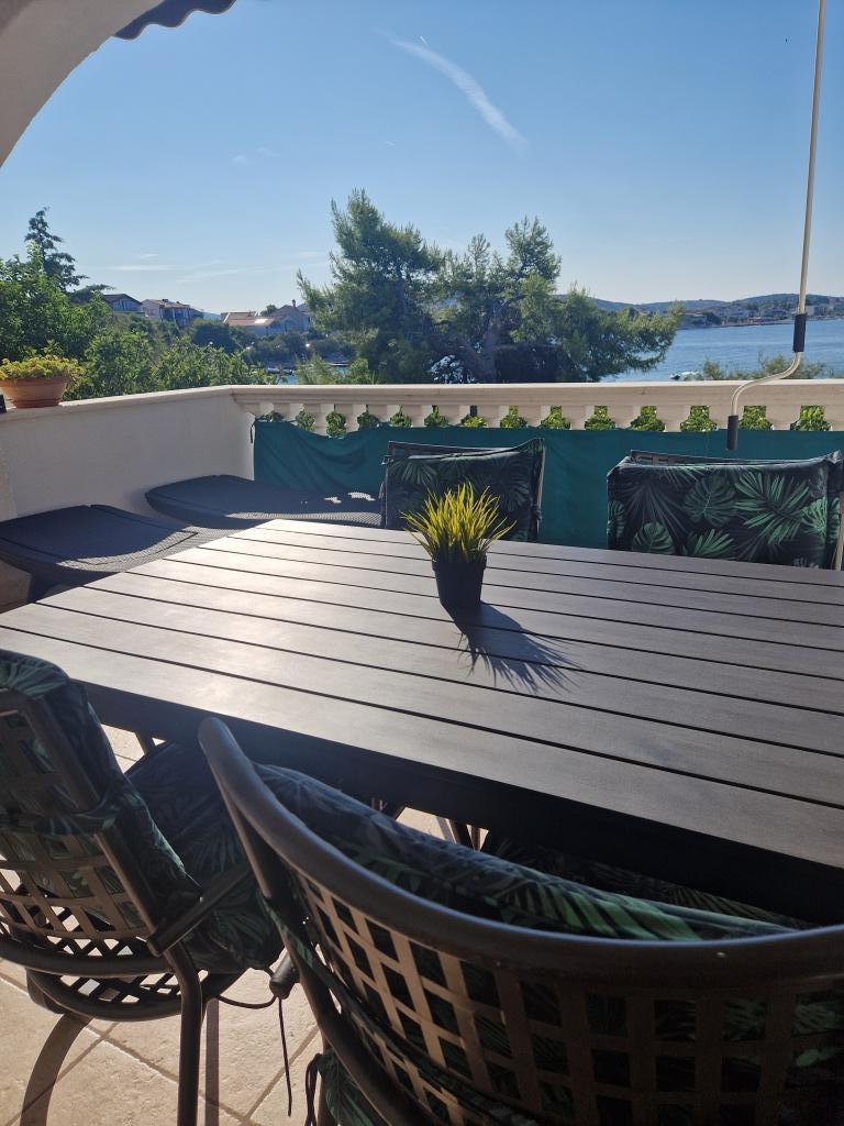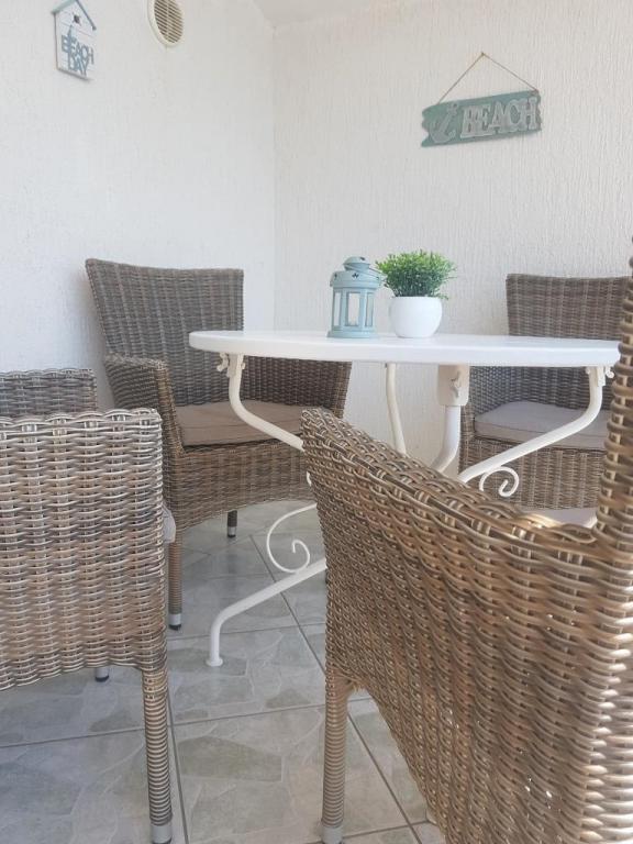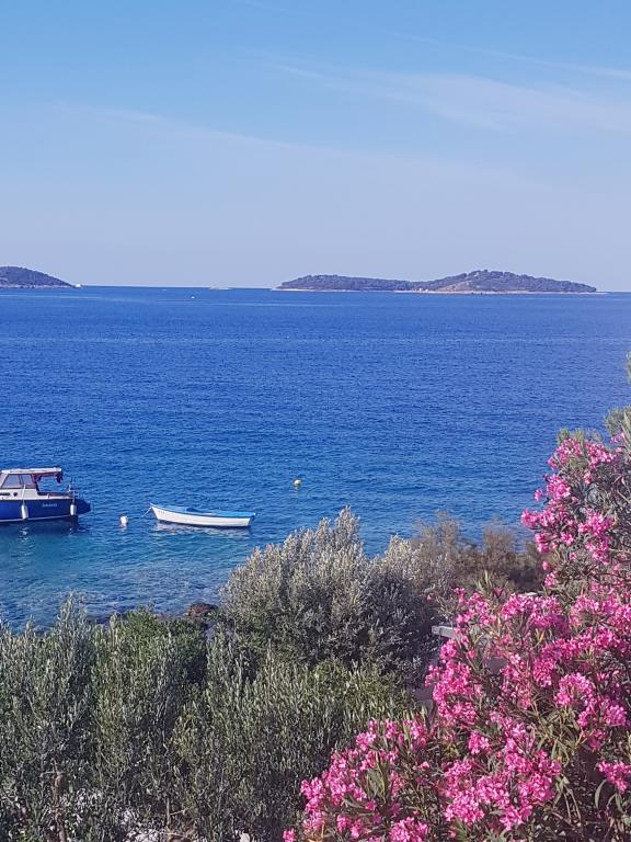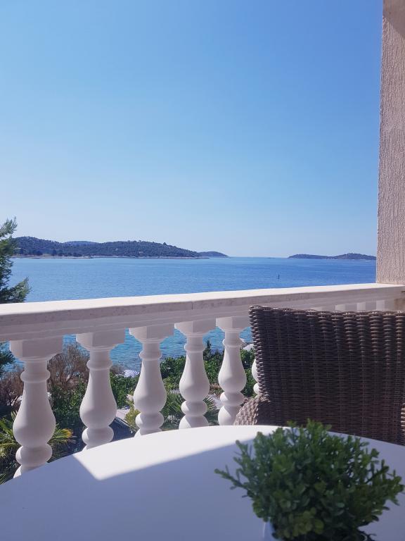 Undslipp stress og folkemængder.. Kom og slap af! Komfortable, store lejligheder med to soveværelser, med en luksuriøs terrasse, beliggende i første række til havet, strand foran huset, Smuk udsigt over havet og frodig have fra alle lejligheder,