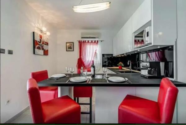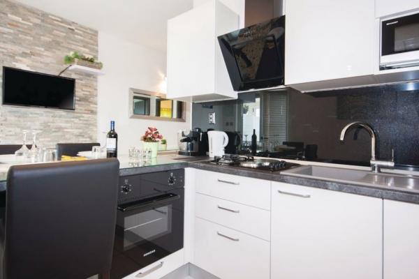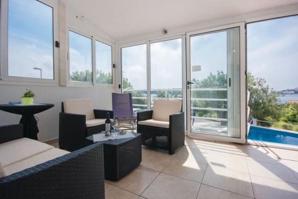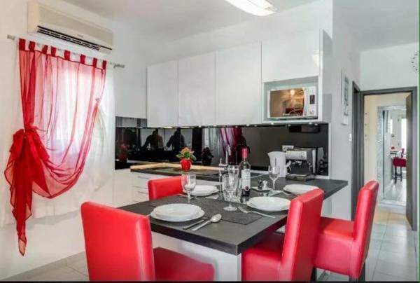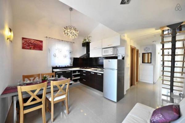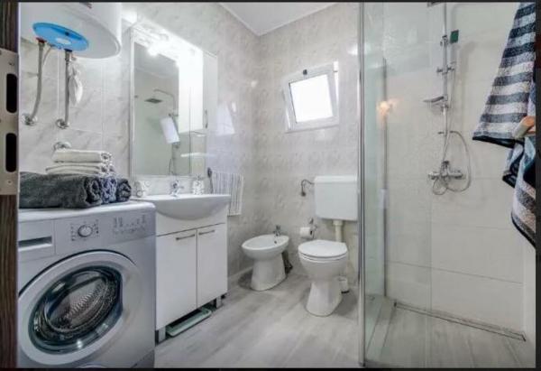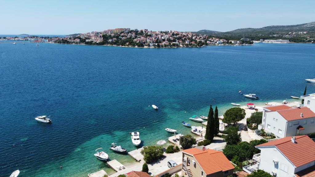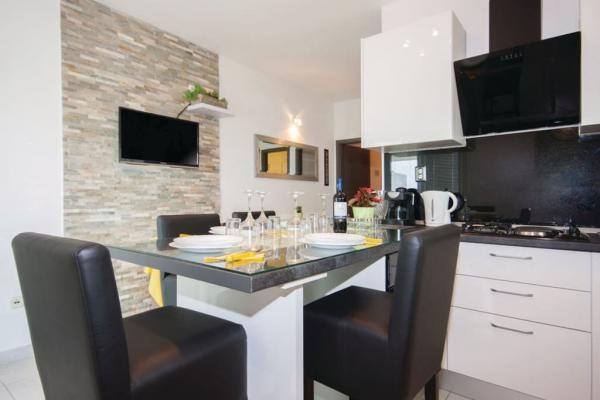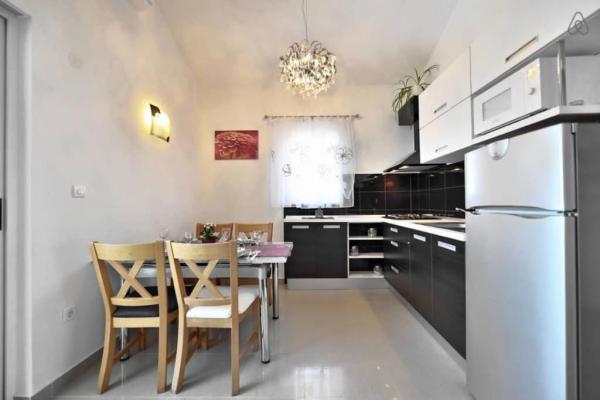 I vores sommerhus er der 4 moderne lejligheder. Hver af lejlighederne har to soveværelser og et moderne udstyret køkken og badeværelse for at gøre dit ophold så behageligt som muligt. To stueetagen lejligheder har en terrasse, som du kan nyde på bugten og i nærheden Rogoznica. De resterende to lejligheder i vores hus er på første sal, to etager og har en balkon, som også tilbyder en smuk udsigt. Vores objekt er beliggende i en stille landsby Zatoglav, som ligger kun 5 minutters kørsel væk fra Rogoznica med bil eller båd og 30 meter væk fra stranden.