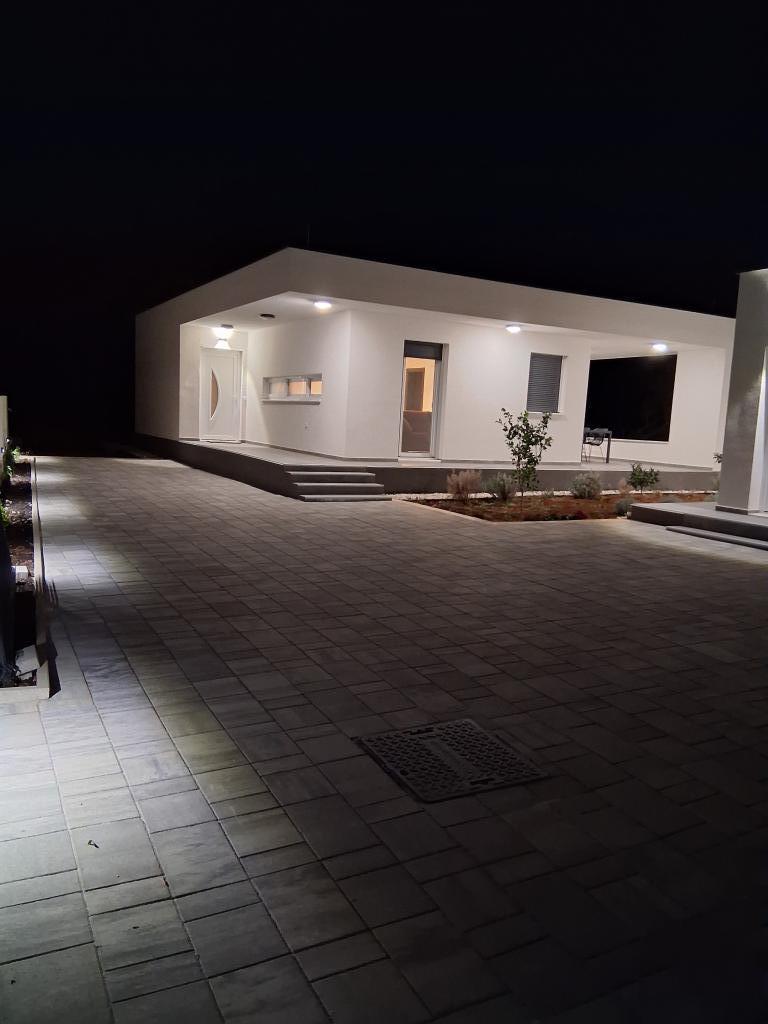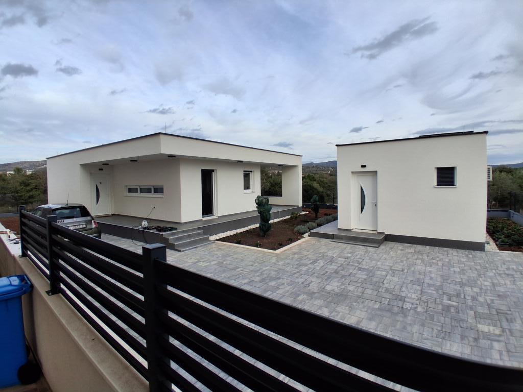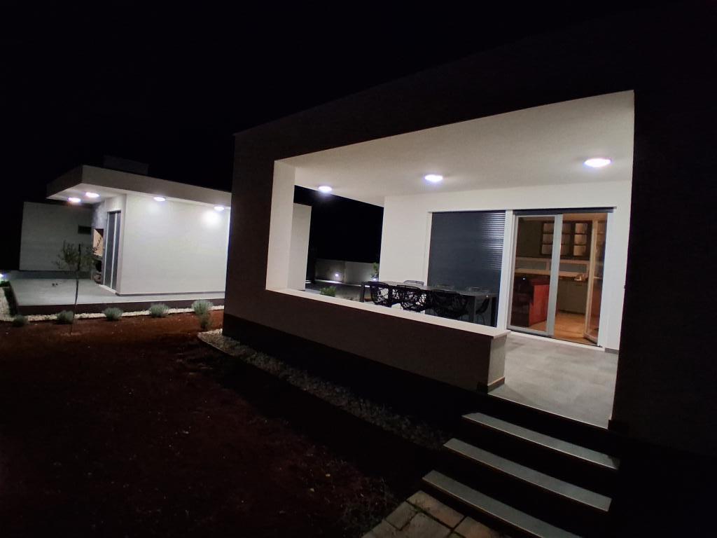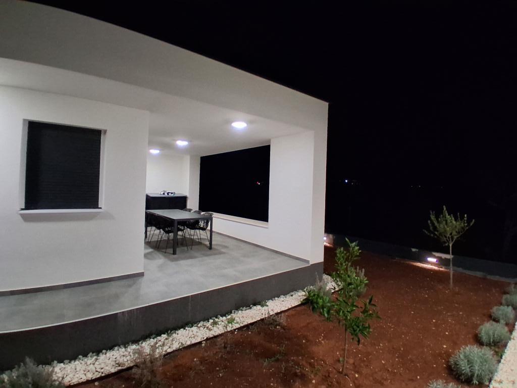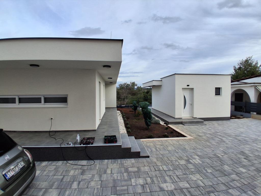 Nyt etplanshus med et boligareal på 70 kvadratmeter og en overdækket terrasse på 30 kvadratmeter ligger i rolige omgivelser væk fra vejen med udsigt over olivenlunden. Den rummelige terrasse er beskyttet mod udsigten fra nabohusene og garanterer privatliv. Stranden ligger inden for gåafstand, få minutter fra ejendommen. Der er privat parkering til tre biler. Det har to soveværelser med aircondition (1 stor dobbeltseng, 2 enkeltsenge), en rummelig stue med aircondition, køkken og spisestue, et stort badeværelse med toilet. Huset er udstyret med helt nye møbler og apparater, smart-tv, terrasse med et stort bord til 6 personer.