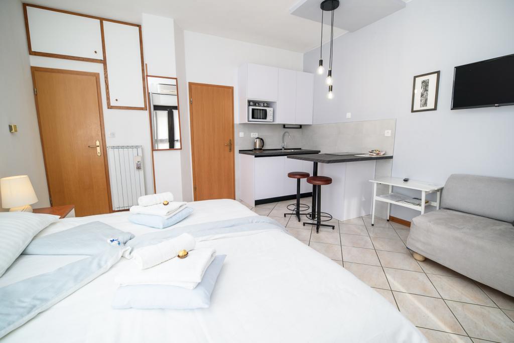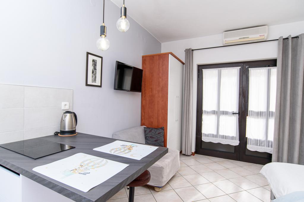 HVAD DU KAN FÅ HOS OS: GRATIS: Velkomstdrink, Grill, Parkering, Garage til dine cykler, Liggestole til terrasser og have, Bykort, brochurer, foldere, Organisering af udflugter efter gæstens behov, Reservation af middag i en restaurant, Information om forskellige områder og faciliteter, Ugentlig rengøring og skift af sengelinned, Skift af håndklæder 2 gange om ugen (efter gæstens anmodning), Transport fra busstationen eller havnen til lejligheden. MED ET EKSTRA GEBYR: Barneseng (5 €), Cykel (efter aftale), Daglig eller hyppigere skift af håndklæder (1 € pr. person), Transport fra lufthavnen (efter aftale). VI TILBYDER DIG INDKVARTERING: i komfortable og rene lejligheder med have og gratis parkering i en fredelig og rolig gade, tæt på strandene og byens centrum, så du kan gå til din placering eller ønskede faciliteter (Salsafestival, Rovinj-Foto-dage, koncerter, udstillinger osv.).