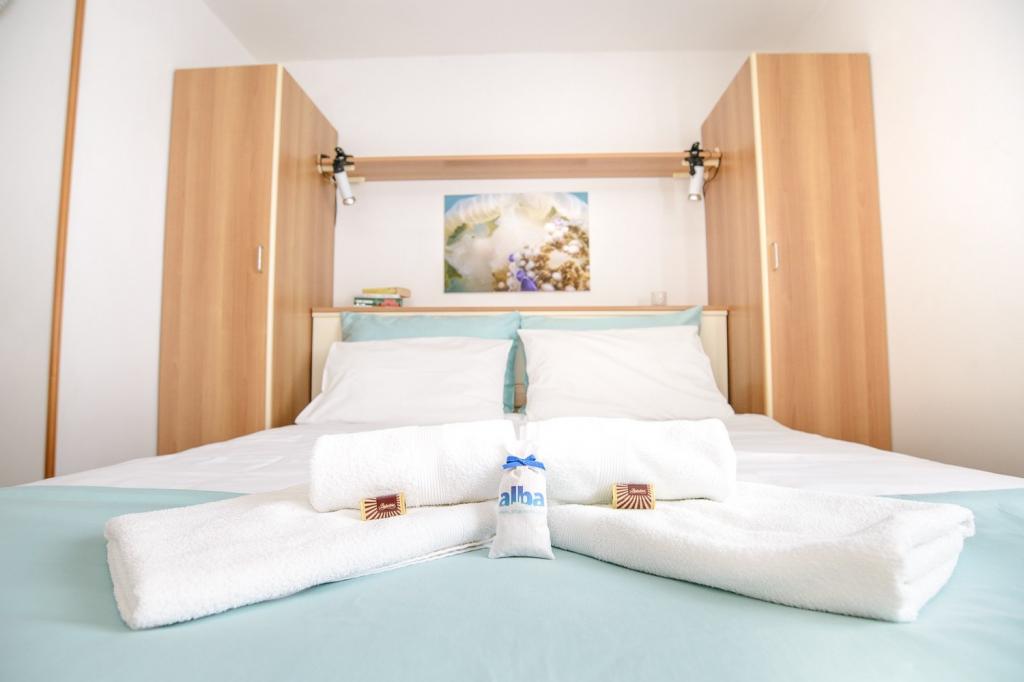 Læs mere IndkvarteringsenhederVigtig bemærkning! Daglige priser er udtrykt på basis af et ophold på 6 dage eller mere. For et kortere ophold er tillægget: 1 nat + 30%; 2-3 nætter + 15% 4-5 nætter + 8% Ekstra seng opkræves + €15 Rabat ved længere ophold og et mindre antal personer i før- og eftersæsonen afhængigt af antallet af dage og personer (specialtilbud). Forudbetaling 30%. Indtjekning fra kl. 15:00; udtjekning senest kl. 10:00.