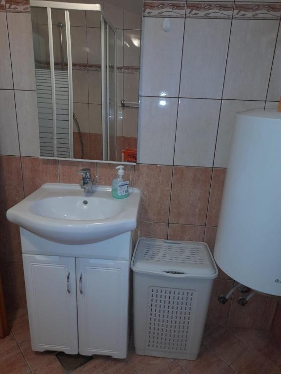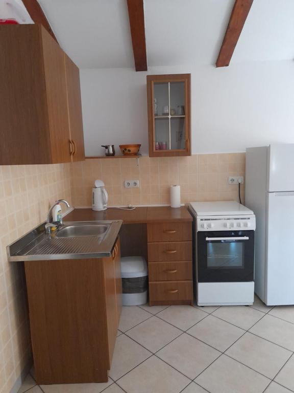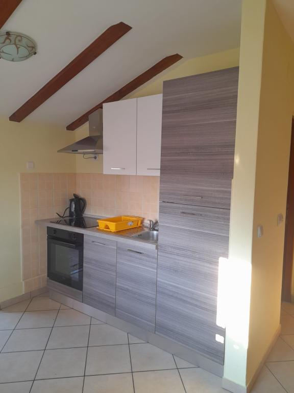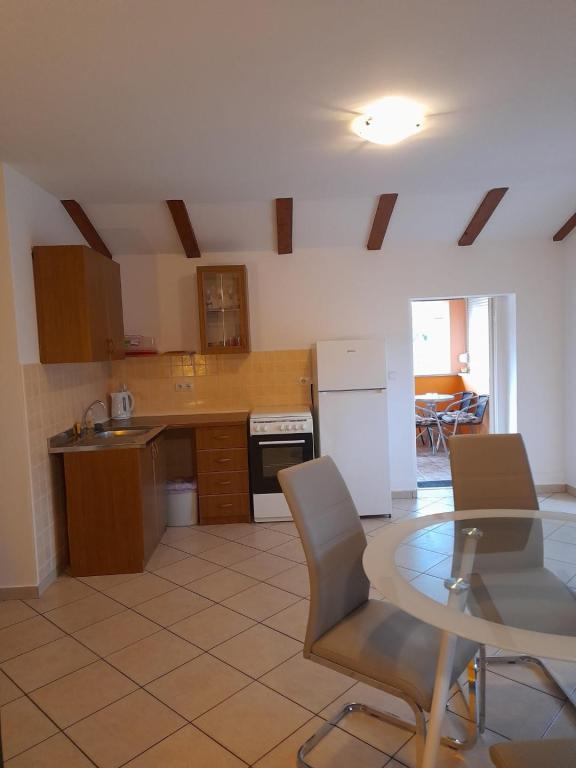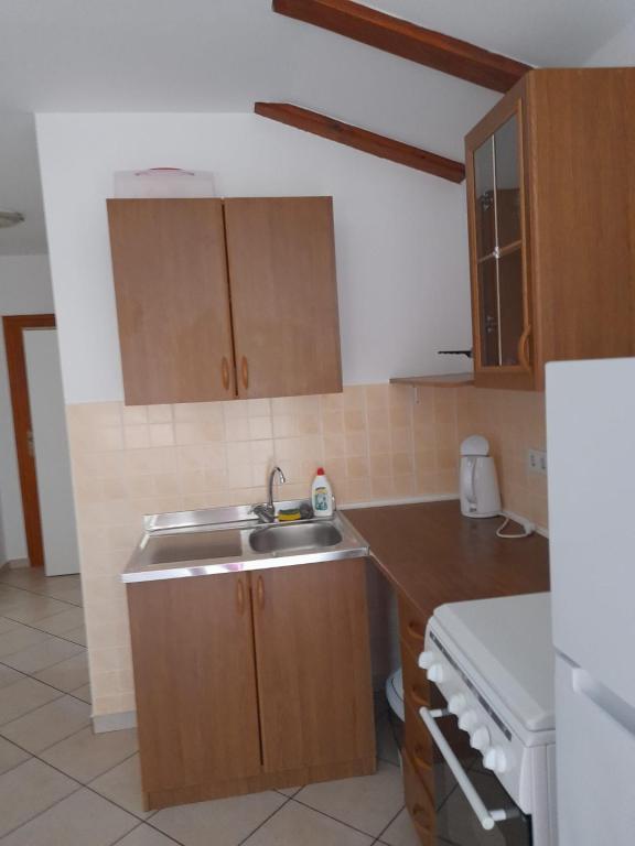 Lejligheden er meget ren, velholdt køkken (tekøkken) udstyret med det nødvendige udstyr til at forberede et måltid - helt tilstrækkelig, en yderligere fordel er den overdækkede terrasse, hvor du kan sidde med en kop kaffe eller aften med en drink. Området er meget roligt, og du kan slappe af. Vært Ms. Dragica meget flot og hjælpsom. Til den nærmeste strand maks. 15 min. Gang til byen ca. 20 minutter. anbefale