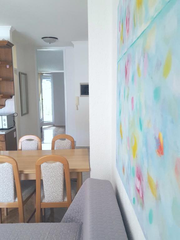 Alt var som det skulle være. Beskrivelsen af lejligheden svarer til annoncen. Den har et roligt miljø, komfortniveau, jeg anbefaler en stille og ubekymret ferie. Udstyret i lejligheden er nyt, bygningen er ren, de tager pleje af sengelinned og friske håndklæder. klimaanlægget tjener sit formål, de lokale er meget venlige, altid tilgængelige, hvis du har brug for hjælp. De serverede endda os slik. Jeg kan varmt anbefale det.