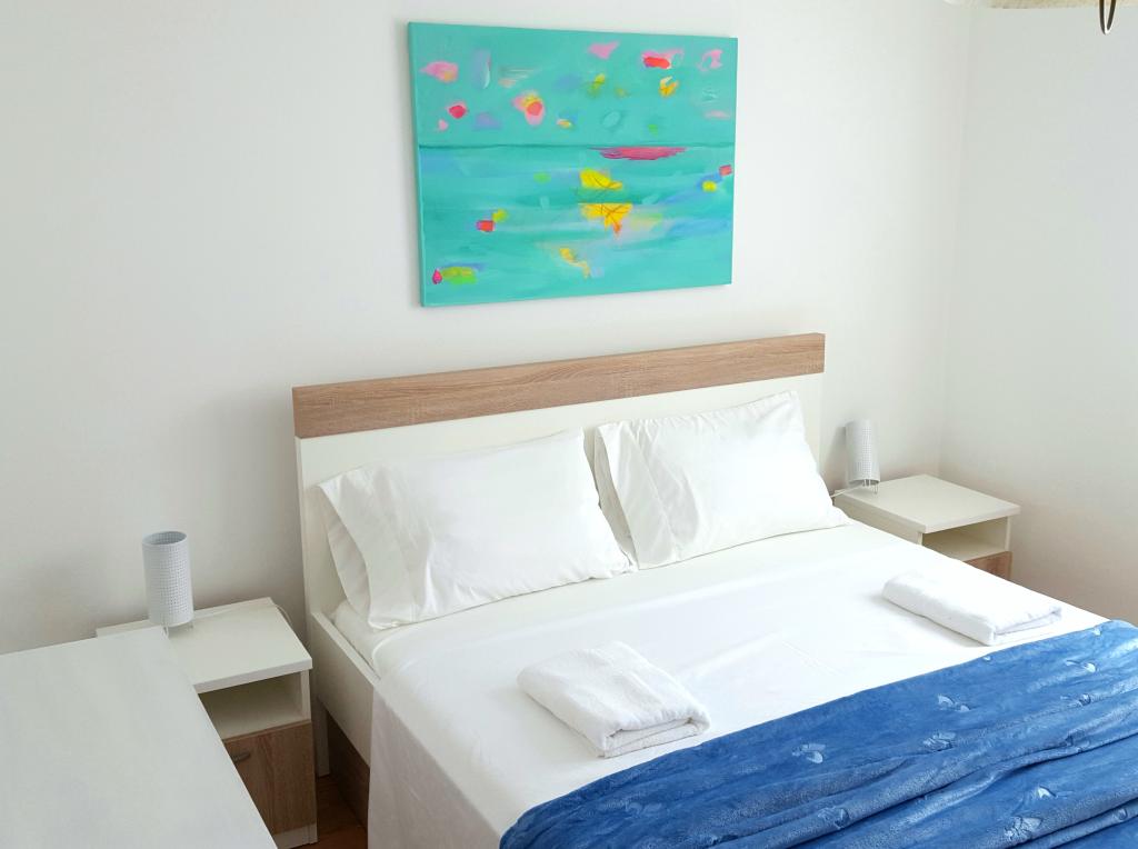 Alle lejligheder er beliggende i en stille og sikker gade og er udstyret med privat gratis parkering, komfortable terrasser, aircondition, wi-fi, køkkener, soveværelser, håndklæder, sengetøj og alt hvad du behøver for en behagelig og afslappende ferie. Anlægget ligger omkring 10 minutters gang fra byens centrum og den første strand. Det ideelle ankomsttidspunkt er 13-15 timer. Afgang er indtil kl. 10.00. Reservation; forudbetaling på 100 eu. Resten betales kontant på ankomstdagen. Priserne er for 2. person, hver ekstra person kan betale et ekstra gebyr på 30eu. Kæledyr er velkomne mod et ekstra gebyr på 15 euro \\1. nat.