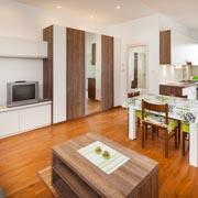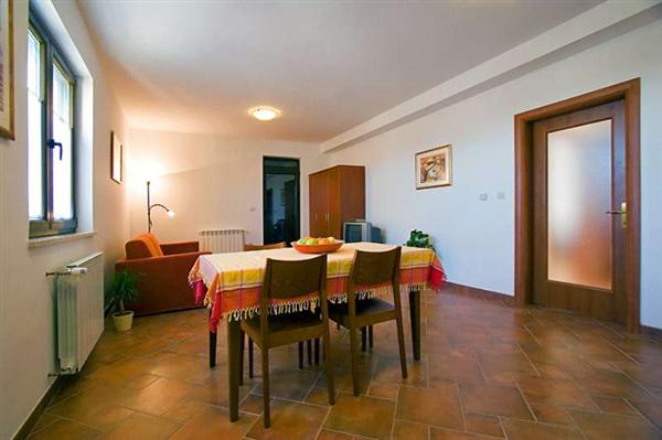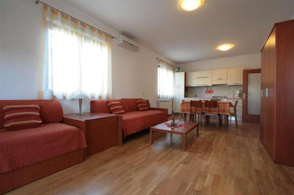 Vores nybyggede lejligheder ligger i en villa nær naturparken Zlatni rt (Punta Corrente), og kun 10 minutters gang fra stranden Kuvi, er til rådighed hele året. Rovinj og dens 10 øer, deres behagelige mikro-klima og stort antal solskinsdage om året, tilbyder svømning og solbadning i naturskønne omgivelser i selskab med måger. Måske du foretrækker lange gåture langs havet i skyggen af fyrretræer eller cykelstier langs havet. Eller måske du er en elsker cruising cykel maleriske Istrien inde i landet, hvor vin veje og gastronomiske lækkerier af traditionelle istriske retter. Hele regionen er rig på historiske monumenter fra romertiden og frem.