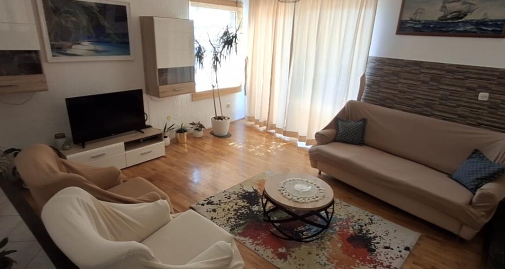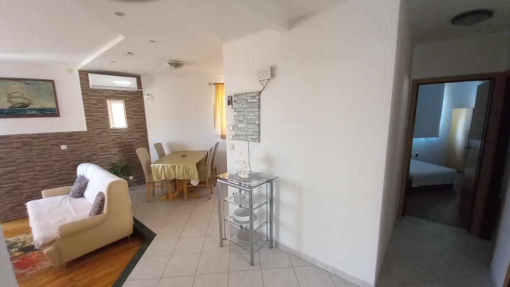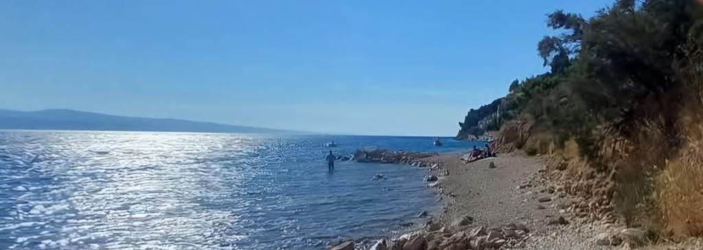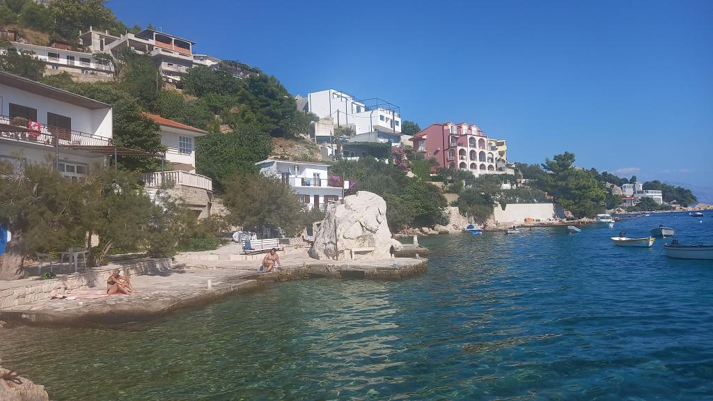 Lejlighed anbefalet, alle som beskrevet (opvaskemaskine, ovn, stort køleskab, bidet). Fantastisk havudsigt fra balkonen og køkkenet. I det ene soveværelse er der en ekstra balkon med udsigt over havet, og i det andet vindue med udsigt de smukke bjerge. På ejendommen er en swimmingpool med fantastisk udsigt over havet og bjergene. Den nærliggende strand (nedenunder) er meget intim, der var ikke en masse mennesker - en lille strand småsten og mange steder stenede / beton og hvad der er vigtigt lyssky. Meget nice vært (Ivo hilse på dig og din familie) - hjælpsomme og høflige. En dag, han bragte os varm cookies med påfyldning.