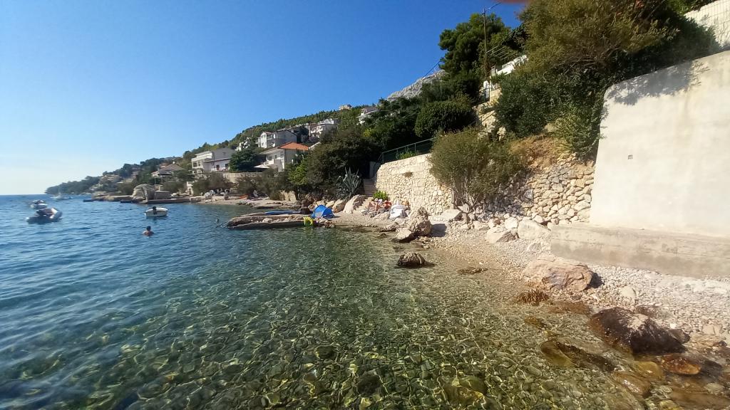 Lejlighed meget veludstyret, rummelige, komfortable senge, aircondition, terrasse med havudsigt, ren swimmingpool. Alt som beskrevet. Bil under taget med indgangen lige til lejligheden. Ejeren er hjælpsom, pæn og hele familien, fantastisk! Han rådgav om gode pubber, smukke strande og de bedste steder at shoppe. Stenstrand i juli næsten tom, ren, smuk. Du skal først ned ad bakken og derefter tage trappen i ca. 6 minutter for at nyde havbadet. Lille landsby, ingen skarer. Tæt på mange vidunderlige steder Omis, Mirabela-fæstningen, Fortica via ferrata, Biokovskie Oko, Skywalk Biokovo, Sveti Jure, Cetina-kløften, Makarska, Split.