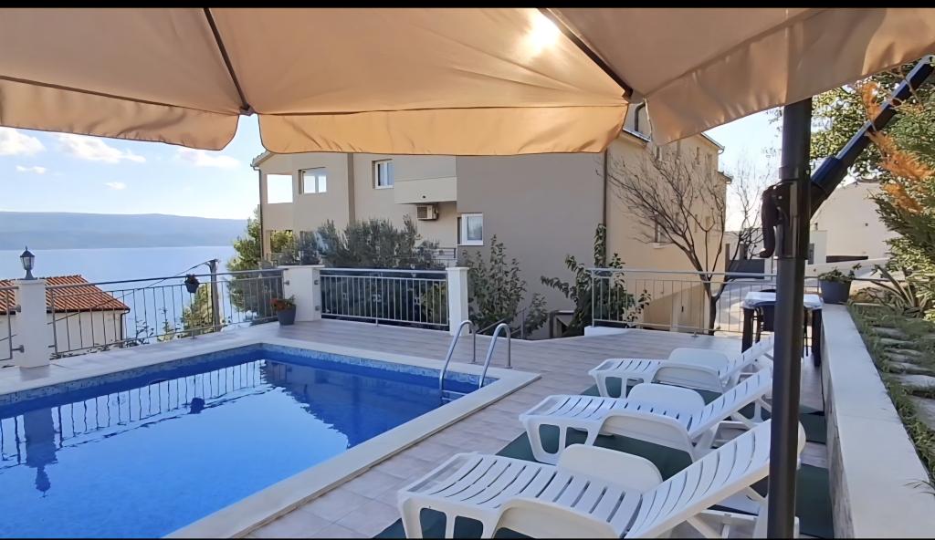 Meget hyggelig lejlighed, ren og rummelig, smuk udsigt fra terrassen med swimmingpoolen, den eneste ulempe er ret stejl og smal adgang til lejligheden og langt fra stranden. Et ideelt sted som udgangspunkt for ture til Omiš eller Baška Voda, vi anbefaler den nærliggende strand Brzet. Vi er glade for ferien Tak Ivo Vi sender hilsener